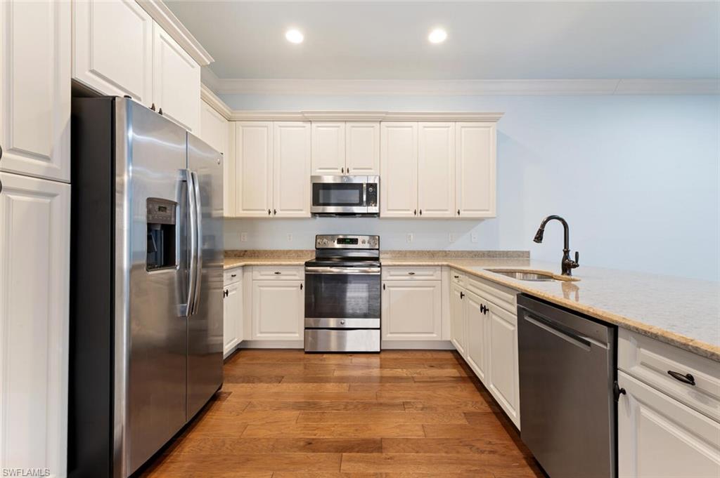 Beautifully appointed attached villa featuring 2 bedrooms plus a den and 2 bathrooms, thoughtfully designed with an open and inviting layout. The home showcases custom wood flooring, brand-new carpet in the bedrooms, crown molding throughout, and elegant wainscoting in the dining room, creating a refined yet comfortable living space. A glass front door welcomes in natural light, while the impact-rated sliding glass door opens to a private screened-in lanai, perfect for relaxing or entertaining. Recent upgrades include a brand-new A/C system with a 10-year transferable warranty and UV light, offering peace of mind and energy efficiency.Located in the heart of Naples within Marbella Isles, an active, resort-style community that delivers the ultimate luxury lifestyle. Residents enjoy an expansive clubhouse with a resort-style pool, private cabanas, kidsu2019 splash park, and playground. Stay active with a state-of-the-art fitness center, game room, indoor basketball court, three tennis courts, four pickleball courts, and bocce courts, all fostering a vibrant and social atmosphere.Ideally situated with two convenient entrances, Marbella Isles is just 10 minutes from Naplesu2019 pristine beaches, Mercato, and Waterside Shops, 15 minutes to downtown Naples, and 25 minutes to the airportu2014offering the perfect blend of comfort, convenience, and coastal living.