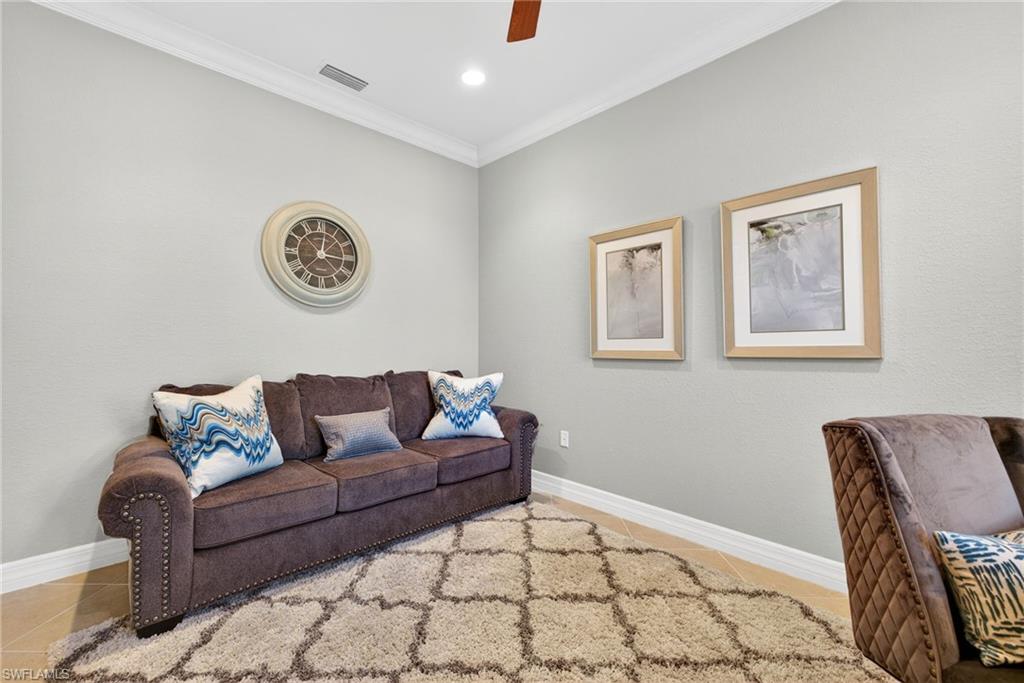 Welcome to 13431 Silktail Drive in the desirable gated community of Marbella Isles renowned for its resort-style lifestyle, rich with amenities with low HOA fees.This villa features 2 bedrooms+den and 2 full bathrooms and is truly a private retreat.Enter into a very private entry with screened-in front porch makes this unit feel like a single family home rather than a villa.Gracious entry foyer with soaring ceilings to an open-concept living space. Chef's eat-in kitchen replete with shaker cabinetry, granite countertops with bar seating for 4, contemporary backsplash and stainless steel appliances. Spacious living room with wall of glass leading out to screened-in lanai and outdoor patios seamlessly blending indoor outdoor living. Lovely dining room ideal for entertaining.Master suite oasis with spacious bedroom, 2 closets and a spa-like bath with walk-in shower, separate vanities and separate water closet.Great guest quarters with lovely guest bedroom plus hall bathroom.Home office which could also be perfect additional guest quarters. 2-car attached garage.Very centrally located with easy access to I-75, Naples and Fort Myers airports, Waterside Shops as well as beaches and downtown Naples renowned worldwide for its fine dining and shopping.Marbella Isles affords you a resort-style lifestyle complete community pool with separate kid's pool, fitness center, tennis, pickleball, bocce, volleyball plus a clubhouse with game room, card room and kitchen for entertaining. Accordion and electric hurricane shutters.Move right in and enjoy living in paradise!