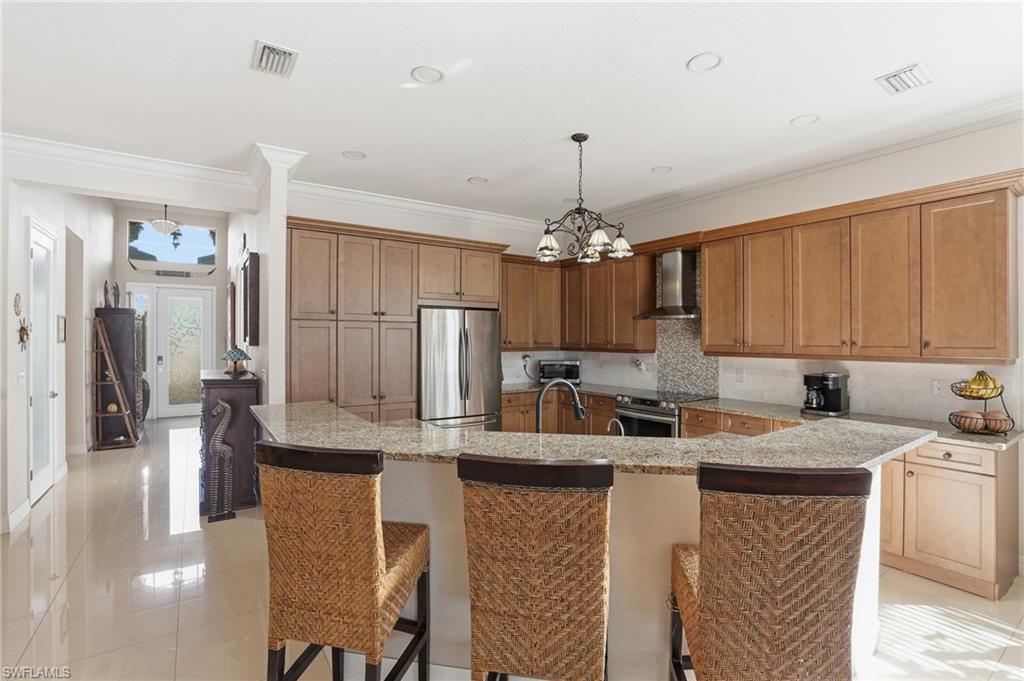 Lakefront home in North Naples with 4 bedrooms, 3 baths and just a short walk to the Marbella Isles clubhouse and resort-style amenities. Ideally located within the community and offering convenient access through both the Livingston Rd and Airport-Pulling Rd gated entrances.Built by GL Homes in 2016, this well-maintained residence offers 2,452 sq ft of living space with high ceilings, elegant marble flooring in the main living areas, and peaceful lake views from both the living room and primary bedroom. The screened lanai provides the perfect space to relax and enjoy the waterfront setting.The outdoor lanai is ideal for entertaining, featuring a beautiful lake view and an outdoor kitchen with a propane cooktop, sink, and granite countertop for convenient outdoor cooking.The kitchen features stone countertops, stainless steel appliances, a large center island, walk-in pantry, and roll-out trays in the cabinetry for added convenience.The versatile floor plan offers 4 bedrooms, with one currently used as a guest bedroom and office with a closet. Bedrooms include fresh paint, new carpet, walk-in closets, and custom shelving.Additional features include a laundry room with washer and dryer and an attached 2-car garage.Residents of Marbella Isles enjoy a beautifully maintained community with resort-style amenities including a clubhouse, pool, fitness center, tennis courts, pickleball courts, and a separate kiddie pool. Private gate access to the Osceola Trail provides convenient walking access to Osceola Elementary and Barron Collier High School.Conveniently located approximately 10 minutes to Naples beaches and Mercato, about 5 minutes to I-75, and just minutes to shopping, dining, and Publix.