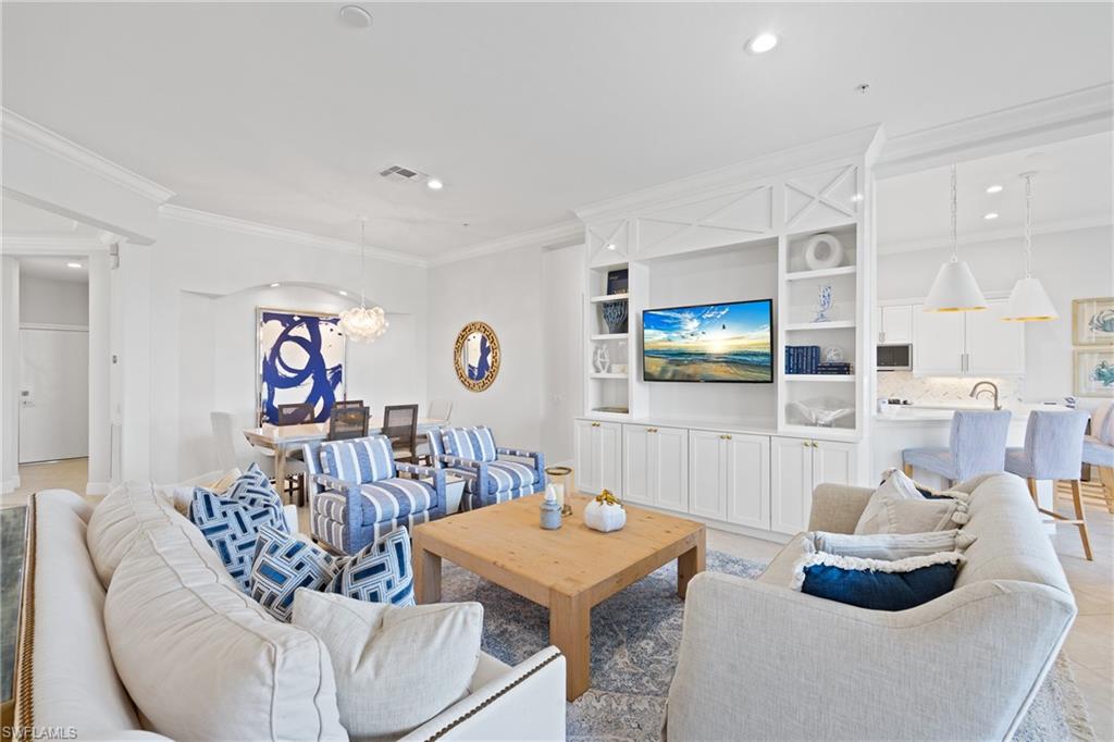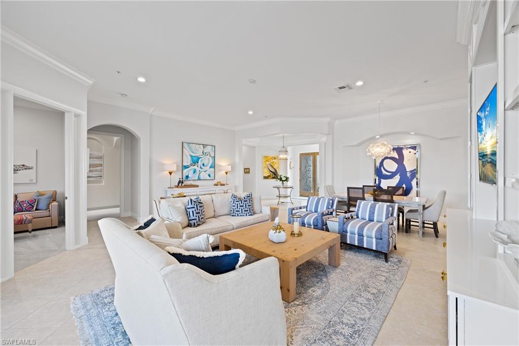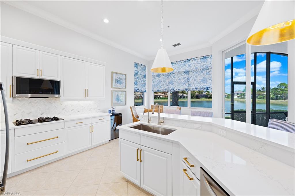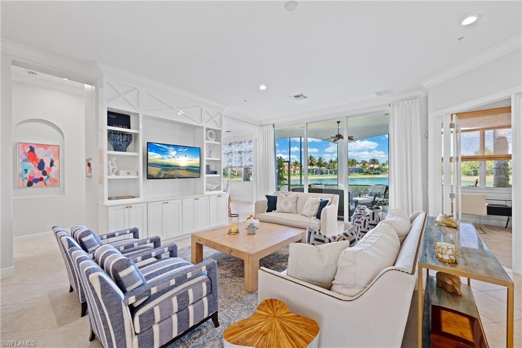 FINALLY! Opportunities to own a residence with a rare view like this are few and far between. Perfectly positioned in one of the Mediterras most coveted locations, this exceptional residence offers the space and privacy of a single-family home with the effortless ease of maintenance-free condo living. Expansive living spaces, refined updates, and an atmosphere designed for both entertaining and everyday comfort. Thoughtfully updated and beautifully maintained, a blend of Florida style and convenience! Generous rooms provide a sense of openness rarely found in condominium living, allowing the home to live comfortably and privately, much like a single-family residence. The true centerpiece is the rare lakefront settingu2014a view like no other in Calabria! Mediterra Club boasts a newly renovated beach club on The Gulf of Mexico with dining, beachside bar and pool, two 18-hole Tom Fazio golf courses, a sports facility with world-class tennis courts. This gated community is considered one of THE ELITE EIGHT in SWFL, with 1,000 acres of open space, lakes, parks and nature preserves, country club programs and options to fit your needs. Roof replaced 2020. HVAC new in 2022. Tankless Gas Water Heater by Nuvian new in 2024. Two remodeled baths 2026. Garage painted 2026. Water filtration system not included but negotiable. Lanai furniture included with sale!