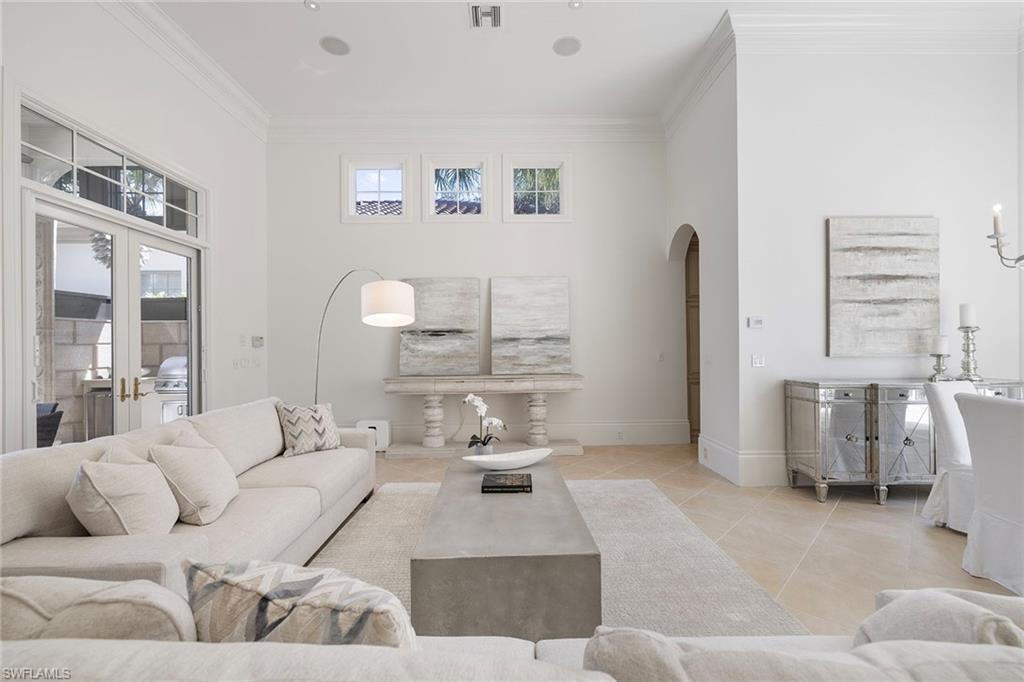 This luminous and generously spaced residence features hurricane-impact windows and doors, a whole-house generator, electric screens at outdoor living area all of which are complemented by a new roof installed in 2018. This exquisite three-bedroom, three-bath home, fully furnished and move-in ready. As you drive in the Villoresi neighborhood of Mediterra, a beautiful fountain greets you as you drive along the tree-lined streets. Inside, custom light fixtures and mirrors adorn the interiors, adding an air of sophistication. Go outdoors through charming French doors onto the airy lanai, a glistening pool and scenic water view, a serene haven for leisure and hosting. Take advantage of outdoor entertaining with a built-in outdoor kitchen featuring a high-end gas grill. Indoors, the kitchen is a culinary enthusiast's delight, showcasing stunning granite countertops and premium Viking and Sub-Zero appliances. Listen to the water trickling down the fountain through French doors that open to the front courtyard. All French doors featuring retractable screens allowing soft breezes to flow through the home. Escape to the primary suite where soft Venetian plaster walls create a peaceful haven. Additional features include a whole-house generator, a tankless water heater, epoxy flooring in the garage, crown molding throughout and plantation shutters, this home is a must see! Enjoy your toes in the sand and golden sunsets at Mediterra's fully renovated private Beach Club along the Gulf! Imagine arriving to have your car valet parked and and lounge chairs and umbrellas waiting for your arrival or set up upon your request. With 10,000 square feet of space, the upper level offers indoor and alfresco dining, a full bar, swimming pool along with lockers and dressing areas for changing. Spend the day and enjoy dinner while watching the sun set in the distance. In the award-winning community of Mediterra where you can have it all with 36 holes of Tom Fazio championship golf, Har-Tru tennis courts, pickleball, bocce and a private beach club!