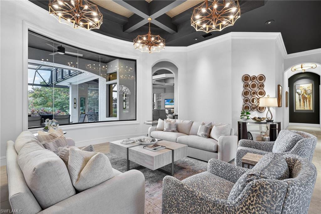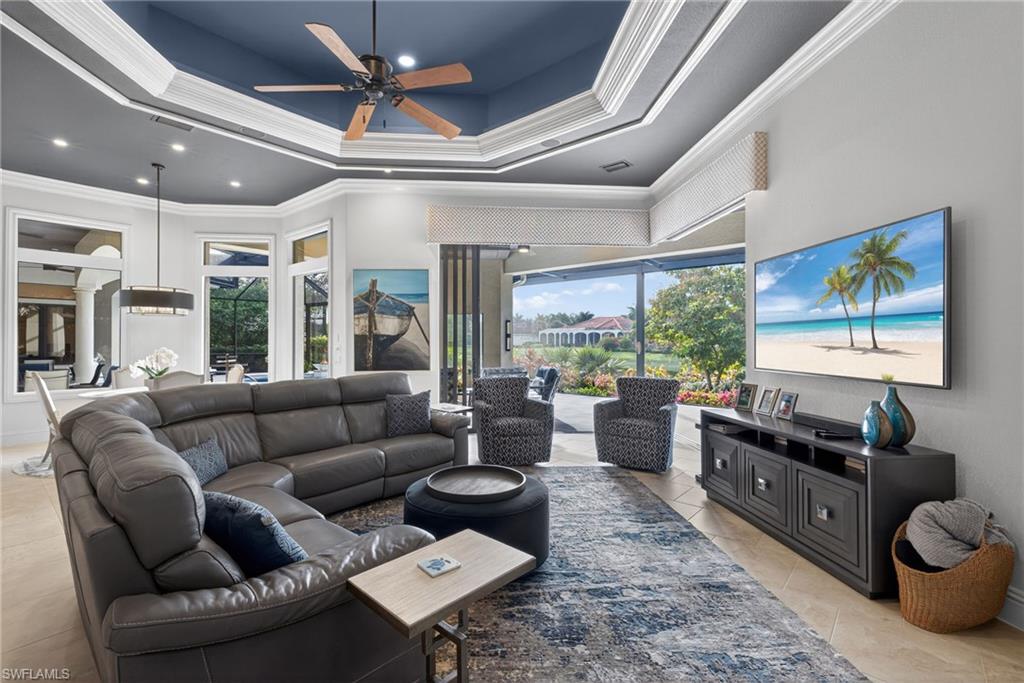 Your Dream Home Awaits!Step into a world of luxury at this stunning Mediterra home, where every detail has been thoughtfully designed for elegance and comfort. Over $1 million in upgrades completed in 2024 make this home truly exceptional. Enjoy peace of mind with a new roof and exterior paint in 2025.The outdoor oasis is perfect for entertaining; a refinished pool and spa, panoramic screening, new pavers, dramatic fire bows and a custom water feature create a resort inspired atmosphere. Host unforgettable gatherings with a state-of-the-art outdoor kitchen featuring a grill, pizza oven, flat top grill, warming drawer, custom bar cabinetry, ice maker and refrigerator drawers. Relax by the see-through fireplace or watch your favorite programs on the drop-down lanai television!Inside, discover architectural elegance with soaring ceilings, designer lighting, and custom finishes throughout. This spacious home offers 4 bedroom all en-suite ensuring privacy for family and friends and 2 powder rooms for convenience. The luxurious primary suite with dual walk-in closets, a private sitting area and a gorgeous spa-inspired bath with soaking tub and oversized shower, offers an ideal sanctuary. 3 guest suites ensure privacy for family and friends.Living in Mediterra offers access to world-class amenities; 2 Tom Fazio designed golf courses, a gulf -front beach club, tennis, pickleball, bocce and fabulous state of the art fitness center. The updated clubhouse offers an expanding sports and lifestyle center dining options and wonderful opportunity to relax with friends and neighbors!