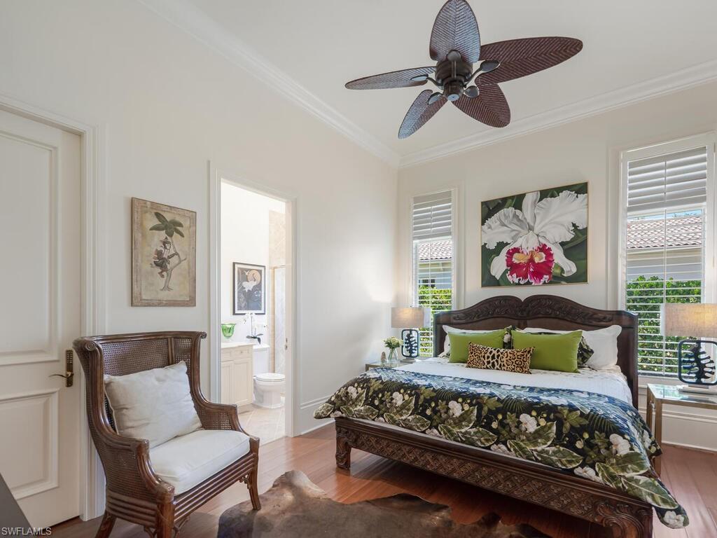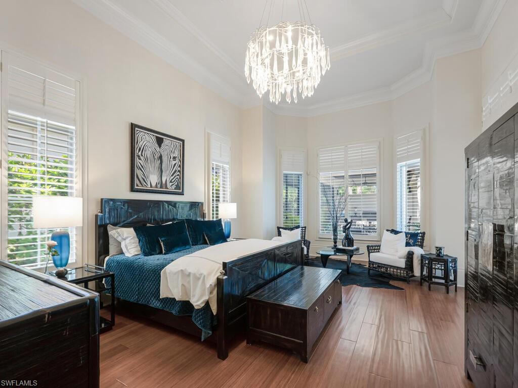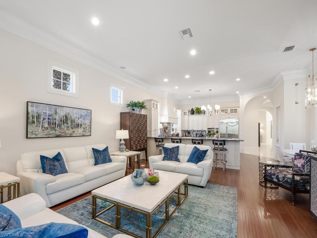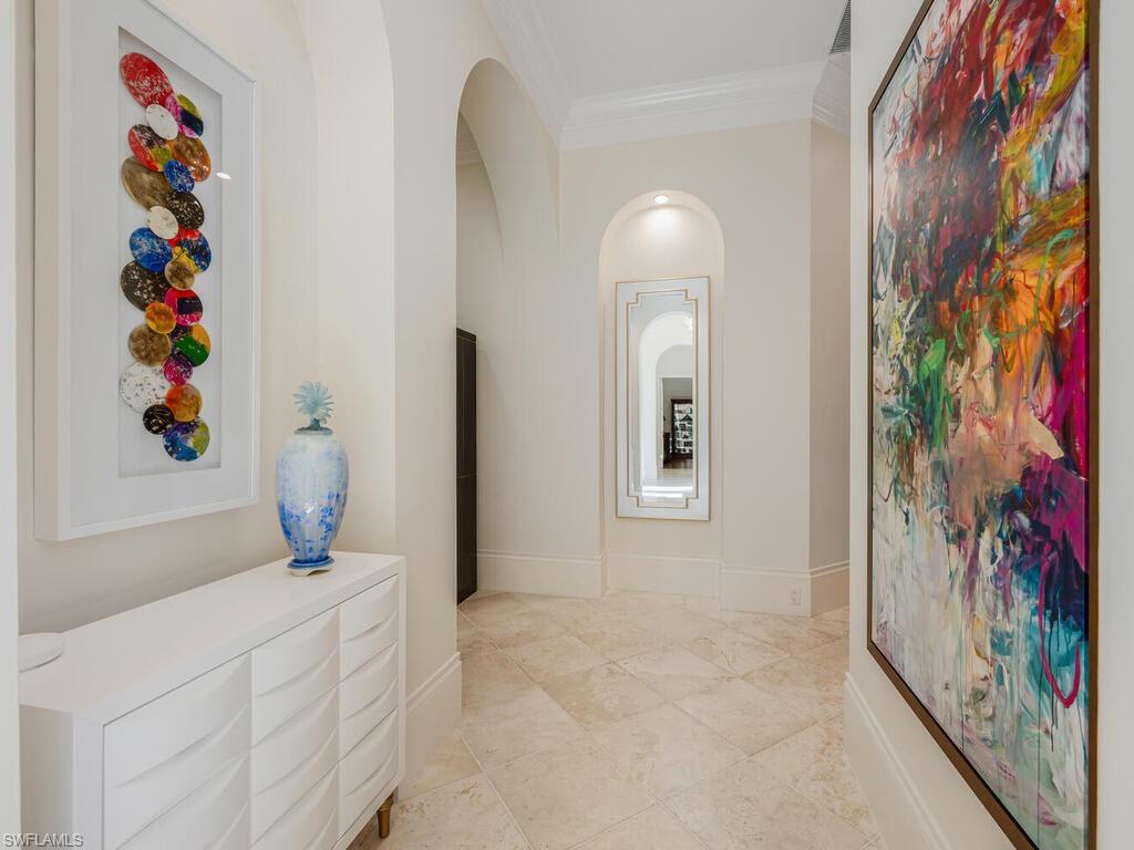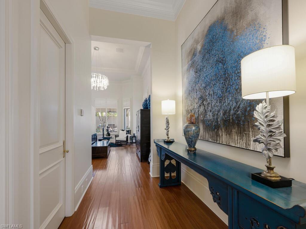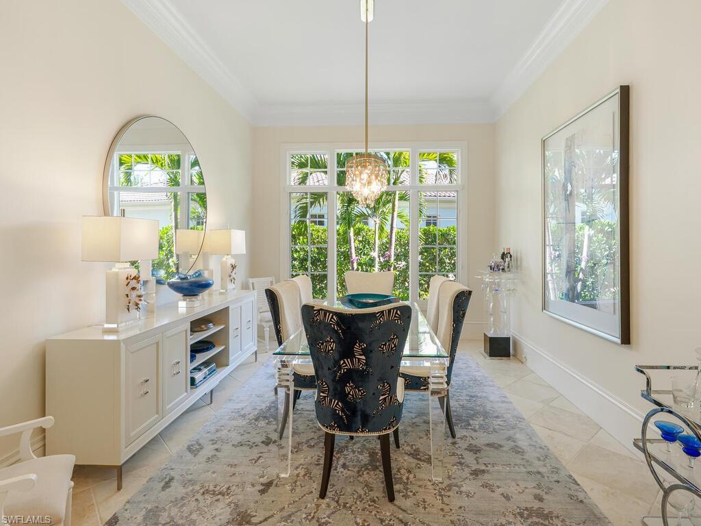 An extraordinary opportunity awaits in Mediterra Golf & Beach Club, one of Naples' most prestigious lifestyle golfing communities! Ideally located in the Terrazza neighborhood, this gracious villa home offers the perfect combination of architectural details, thoughtful upgrades, panoramic sunsets, private preserve and serene lake views! Built in 2006, this residence spans just under 4,000 square feet of grand living space and features three spacious bedrooms, a private office, three full and one half baths and a three-car garage. The primary suite is a sanctuary of comfort, featuring custom designed his and her walk-in closets & a luxurious spa-like ensuite bathroom. Stone and wood flooring extend through the living area, while high ceilings and generous millwork create an airy, refined interior filled with natural light.The kitchen is both beautiful and highly functional, appointed with custom cabinetry offering abundant storage, elegant glass tile backsplash, a six burner gas cooktop and a complete suite of new stainless appliances, including wall oven, microwave, dishwasher, and refrigerator. Open to the family room, the layout encourages connection and comfort, with patio and pool side views with sight lines to the impressive outdoor living space renovation that is ideal for everyday living and entertaining. Blending seamlessly with the natural surroundings, the rear outdoor living space has been completely reimagined! From the new Travertine decking and pool coping, new pool/hot tub surfaces, new outdoor pavilion perfect for al fresco dining - complete with kitchen featuring 2 refrigerators, wine chiller, BBQ grille and built in blue tooth sound system to the wood detail ceilings for both pavilion and fireplace sitting area, new cabinetry with granite tops flanking the gorgeous brick fireplace, designer fans, fabulous landscape lighting, new landscaping, outdoor furniture and more, no detail has been overlooked! The entire rear patio space features a new cage with picture window screen to maximize scenic views and optimize relaxation and total enjoyment of the outdoor lifestyle experience. Additional highlights include a Generac 26kw generator with WiFi, newer (2021) installed Trane 2.5 ton AC, newer (2021) Pool Heater. A truly exceptional lifestyle awaits you at Mediterra! Spend your day reclining poolside and enjoying panoramic sunsets at the newly renovated 10,000 square foot private beach club featuring full bar service, sea-side dining, cabana service, sundeck and swimming pool. A recreational enthusiast's dream with 36 holes of Tom Fazio Championship golf, eight miles of scenic biking and jogging pathways, a state-of-the art fitness center, tennis and pickleball courts, bocce, and a soon-to-be-complete transformation of the Sports & Lifestyle center. Welcome home!