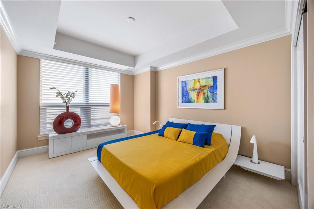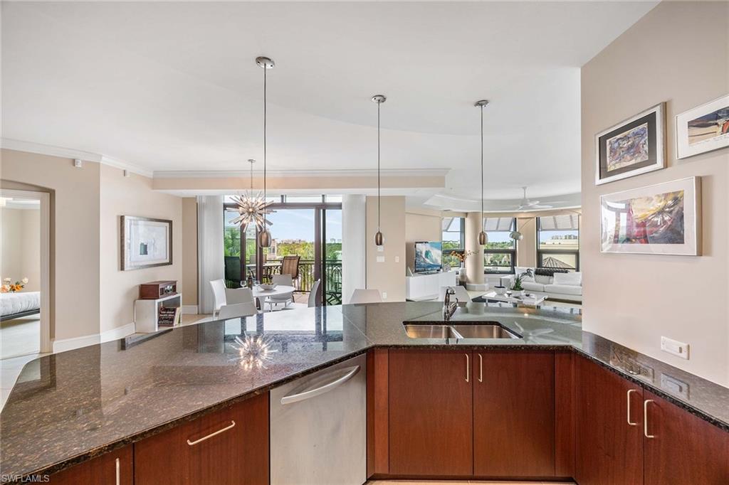 Experience the ultimate in effortless luxury living from this stunning three-bedroom, three-bath residence perfectly positioned on the fourth floor, capturing breathtaking sunset views. Thoughtfully designed for comfort and privacy, each bedroom features its own en-suite bath, ideal for hosting guests or enjoying your serene retreat. An expansive open great room filled with natural light through walls of impact windows creates a welcoming space for relaxing or entertaining. The kitchen, appointed with rich wood cabinetry, a generous breakfast bar island and ample counter space, is the heart of the home, ideal for casual mornings or lively evenings with friends. Go outside and embrace the vibrant Mercato lifestyle, where boutique shopping, world-class dining, Whole Foods and a luxury cinema are all just near your door. Unwind atop the private rooftop amenities deck, complete with a 52-foot resort-style pool, spa, fitness center, clubhouse and dog park, an urban oasis designed for relaxation and connection. With two covered parking spaces in the owneru2019s gated garage, convenient same-level storage and Vanderbilt Beach only 1.5 miles away, this residence blends cosmopolitan energy with coastal ease. A rare opportunity to live where luxury, convenience and lifestyle converge.