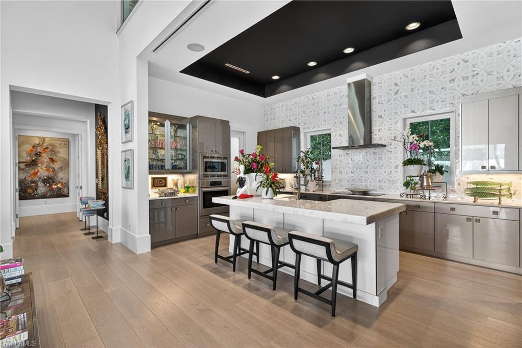 WELCOME TO CASA MAR at The Residences at Mercato. Casa Mar offers a rare and elevated lifestyle just minutes from Naplesu2019 famed white-sand beaches and championship golf. Located within a refined, gated enclave of only 45 residences, this exceptional home enjoys the unparalleled convenience of Mercatou2019s walkable lifestyleu2014surrounded by fine dining, numerous boutiques, Whole Foods, entertainment, and world-class arts and cultureu2014while remaining gracefully secluded behind elegant private walls. Inside, soaring ceilings and expansive living spaces create an atmosphere of light, volume, and understated sophisticationu2014designed for inspired living and serene retreat. A hidden GEM! Set on a premium double lot, one of only four homes of this style, this spacious residence features 4 Bedrooms plus Den, 3.5 Baths, and a generous Loft with Office Space. A dramatic two-story Foyer and Grand Salon flow seamlessly into multiple outdoor patio spaces, creating a harmonious blend of indoor and outdoor living ideal for effortless entertaining. Additional highlights include: Saltwater pool, outdoor kitchen next to BBQ, private sauna w/Blaupunkt Music System, four-car, double garage with built in storage, pet-friendly private walking backyard, and Professionally Decorated by published designer with many refined touches from around the world. Uniquely positioned between two Ritz-Carlton resortsu2014the Beach Resort and the Golf Resortu2014approximately four miles apart. This distinctive positioning is not offered in any other location in the United States. The newly unveiled Piazza introduces a refined focal point for community life, featuring a substantially expanded footprint, curated landscaping, elegant lighting, lounge-style seating, and a purpose-built stage for cultural programming and live performances. Designed for connection and celebration, the Piazza hosts concerts, outdoor cinema, and seasonal gatheringsu2014enhancing the allure of a sophisticated, walkable lifestyle surrounded by acclaimed dining, boutiques, and entertainment. Turn-Key and Move-In Ready.