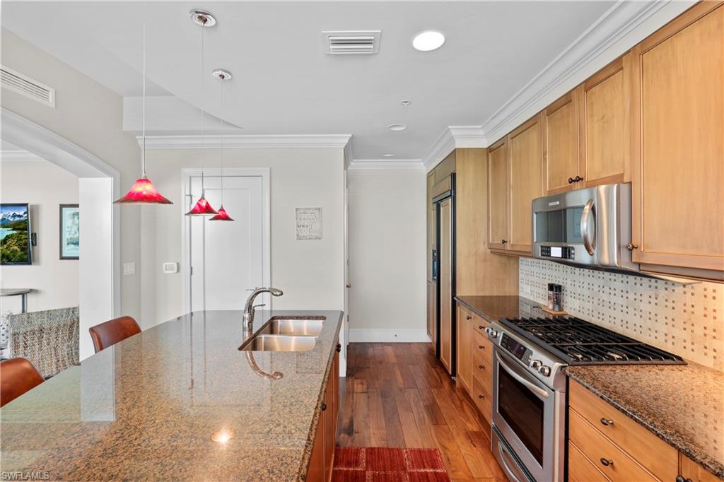 Annual Furnished Property. $5000 per month. Also available monthly throughout the summer and fall. Highly desirable floor plan in the Strada at Mercato! Beautiful open concept living area with wall of impact sliding glass doors bringing in an abundance of natural light. Kitchen has large island perfect for entertaining, Kitchen aid appliances and gas cooking. Spacious flex space that can be used not only as guest bedroom but also used as very comfortable and private home office. Enjoy the outdoor living space on the expansive balcony located off the main living area. The Strada at Mercato offers luxury urban living with resort style rooftop amenities, including a sparkling 52 ft pool, a gorgeous renovated clubhouse, fitness center and gated dog park. Restaurants and shopping just outside your door including Whole foods, and a 12 screen movie theater. Perfect for vacation get away, rental investment or year round residency. This home includes 2 parking spaces in the owners gated garage and a storage space located on the same floor. Just 1.5 miles to Vanderbilt Beach. Also available seasonally at $11000 per month. **Information contained herein deemed reliable but not guaranteed**