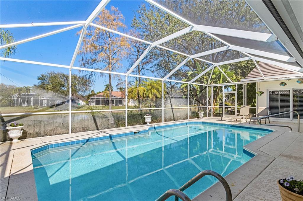 This stunning 4-bedroom, 3-full bathroom residence is situated in the highly sought-after Monterey community in Orange Blossom, a premier location known for its desirable lifestyle and convenient access to Southwest Florida's pristine beaches, high-end shopping and fine dinning. Spanning a generous .33-acre lot, this property offers serene lake views complemented by lush, mature landscaping that enhances privacy and curb appeal. The expansive outdoor space features a refreshing lap pool, perfect for exercise or relaxation in the Florida sunshine. Step inside to soaring ceilings accented by elegant crown molding, creating an open and airy atmosphere. The home is bright and full of natural light, thanks to new hurricane proof windows and sliding doors paired with Bermuda wooden shutters throughout. Luxurious imported Italian 24` stone tile flooring flows seamlessly across the living areas. The custom kitchen showcases fine wood cabinetry, granite countertops, and premium stainless steel appliances, including a Thermador stainless steel refrigerator. Granite countertops extend into the bathrooms, where you'll find a relaxing jet tub in the guest bathroom. Formal dining and living rooms provide ideal spaces for entertaining. Additional recent upgrades include a new roof installed in 2019 with durable flat tiles. New AC unit, pool water heater, and full-house generator with a 500 gallon buried propane tank were installed in 2022. Residents enjoy exclusive access to the community's 24-hour manned guard gate for enhanced security. The renovated clubhouse is a standout feature, boasting a state-of-the-art indoor gym, billiard room with pool table, card room, gathering room, and library. Outdoors, take advantage of a covered children's play area, heated clubhouse lap pool, 3 Har-True clay tennis courts, and a basketball court offering resort-style amenities right at home. This exceptional property combines modern upgrades, timeless elegance, and an unparalleled community lifestyle in one of Naples's most desirable neighborhoods. Ideal for those seeking luxury, comfort, and convenience in Southwest Florida.