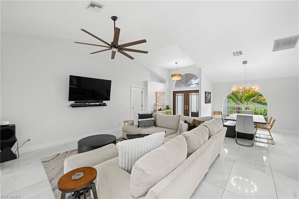 Effortlessly sophisticated home on a cul-de-sac street in the highly sought after and rarely available Monterey community! This 4 bed/3 bath + den home was recently updated to include an additional 500 sf of living space and an open kitchen perfect for entertaining. So much is NEW in this home, both inside and out! Full of luxurious finishes, including a professional La Marzocco espresso bar, Simonelli grinder (worth $12k), NEW Italian ceramic tile, New double convection oven, NEW AC with UV light filter, NEW water heater, NEW water well and NEW RO system. Outside features a butterfly garden, $55k of NEW landscaping, NEW lanai casing, NEW parking pad, and a spacious backyard with a zip line and trampoline. All furniture conveys, including a piano and Nest cameras. Located in an A+ rated school zone, just 1 mile from the beach, near the upscale Mercato and Waterside Shops. The gated Monterey community offers a renovated clubhouse, resort-style pool, fitness center, tennis, pickleball, and more. With easy access to I-75, the SWFL International airport, world class dining, shopping, entertainment, and beautiful white-sand SW Florida beaches.