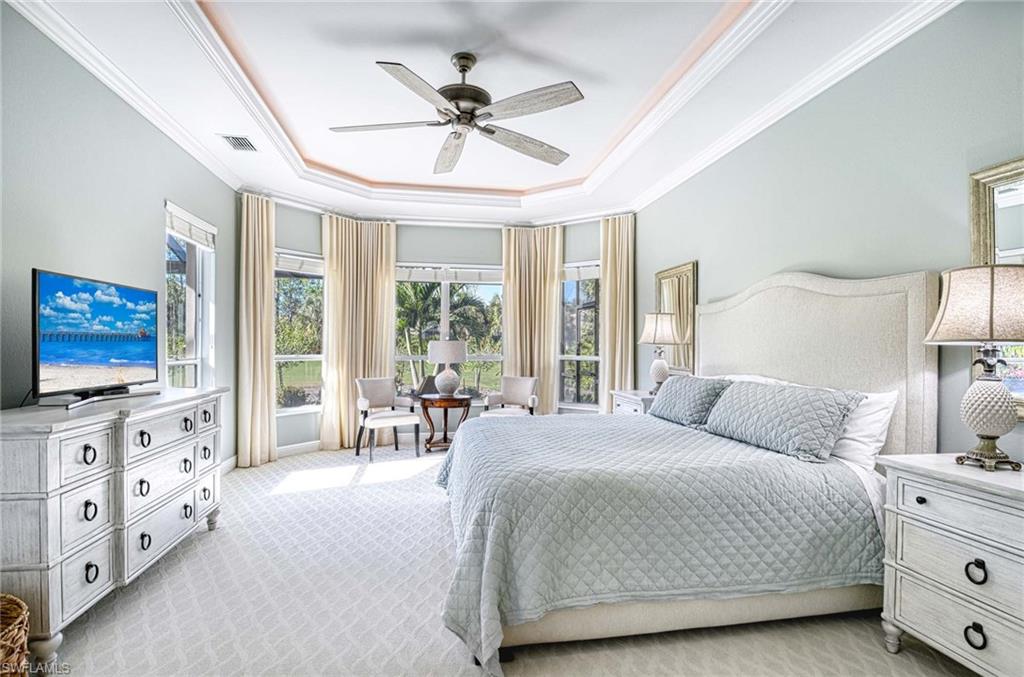 FULL GOLF MEMBERSHIP now open. Pleasantly updated with expanded lanai, updated lanai surface and panoramic screen cage. Arthur Rutenberg 2+Den home with 2.5 baths freshly painted inside and out for a coastal ambiance. Golf course view is a fabulous opportunity, set on a lot that provides views of the back tees on #6 of this PB Dye golf course with woods beyond, no homes visible across the way. Updated lighting. Newer roof for your peace of mind. The two car expanded garage can fit a golf cart and two cars. Plantation shutters, updated appliances and mechanicals. Ample undercover area on the lanai. Coveted front hall closet. Storm smart and manual shutters. Private golf carts permitted at Olde Cypress, in the community and on the golf course with private golf membership. NO CDDs at Olde Cypress. Social membership required, with no initiation fee and no food and beverage minimum. Only 550 doors in the community with no condos, making it very social and less transient. Stop by the clubhouse to pick up a Social Calendar to peruse how much fun it is to live at Olde Cypress. Clubhouse at Olde Cypress soon to be unveiled. (No assessments to members) Active Pickleball and Bocce and Tennis groups all included with Social Membership. Limited Full Golf Membership now available. Note: The last two owners have moved to larger homes in Olde Cypress and enjoy the community immensely. Sonos excluded. Garage door has new LiftMaster with built-in camera.