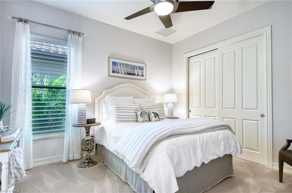 Pristine Orchid II at Latana at Olde Cypress, largest floor plan built with Four Bedrooms, Den and 3.5 baths is now available. Impeccable upgrades and impact resistant protection (not all Lantana homes have this upgrade) makes for peaceful and quiet enjoyment. Upgrades to kitchen and trim work selections. Primary suite has TWO walk-in closets, one has owner's closet locks (home was never rented). Lightly lived in home has been meticulously cared for and has been recently serviced thoroughly, 2024 water heater and heat pump. Gas cooking (rare find for Lantana), and exquisite window treatments. The Club at Olde Cypress is undergoing and soon to be revealed $17m clubhouse featuring NEW rooms throughout. New Bocce courts, Pickleball and Tennis for all Social Members with required membership that has NO initiation fee. Full Golf currently on waitlist and by choice on this well respected PB Dye challenging golf course.