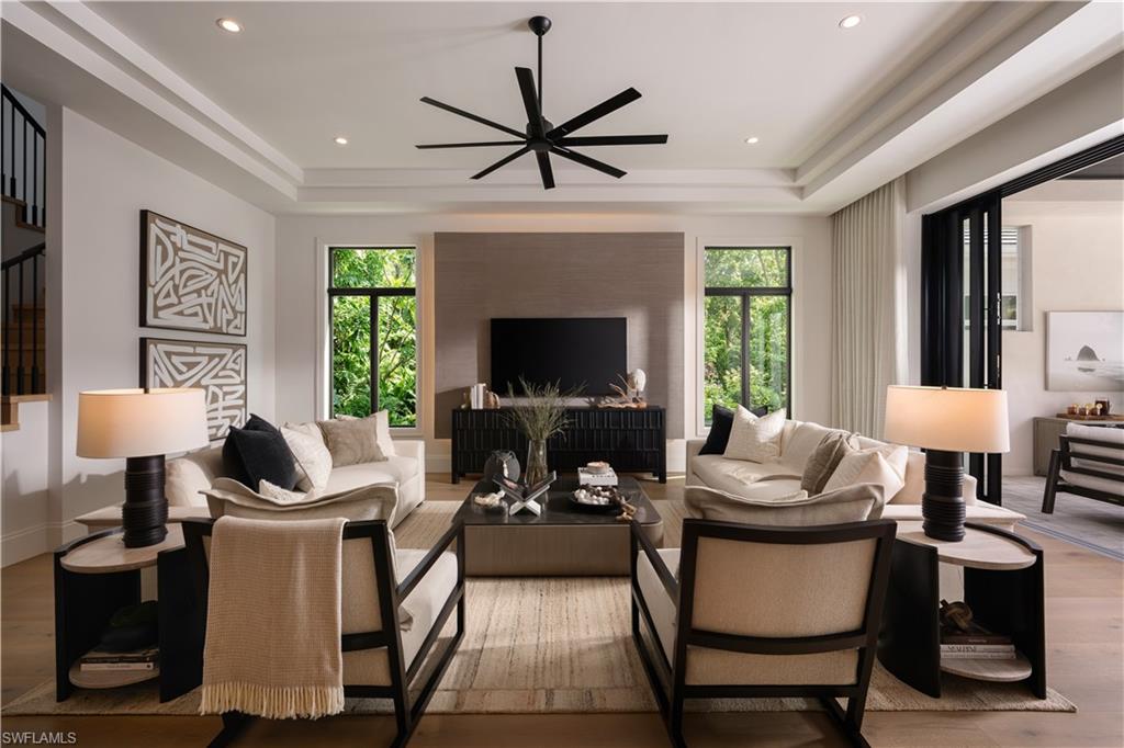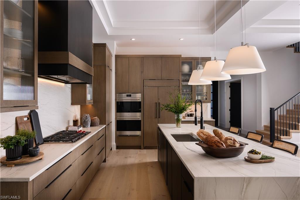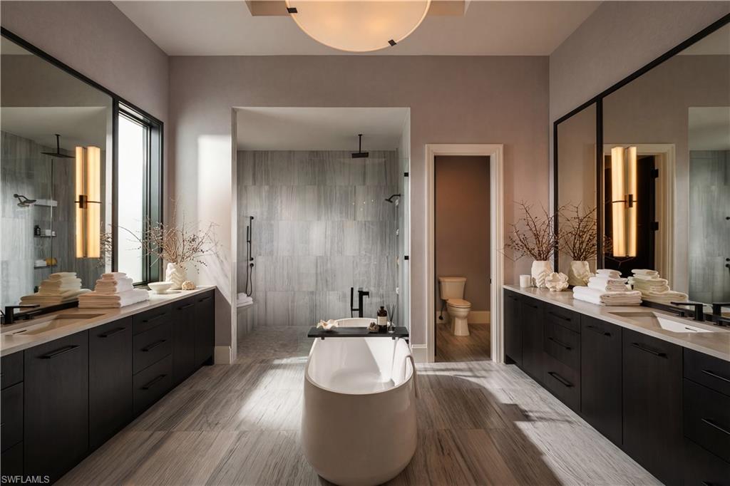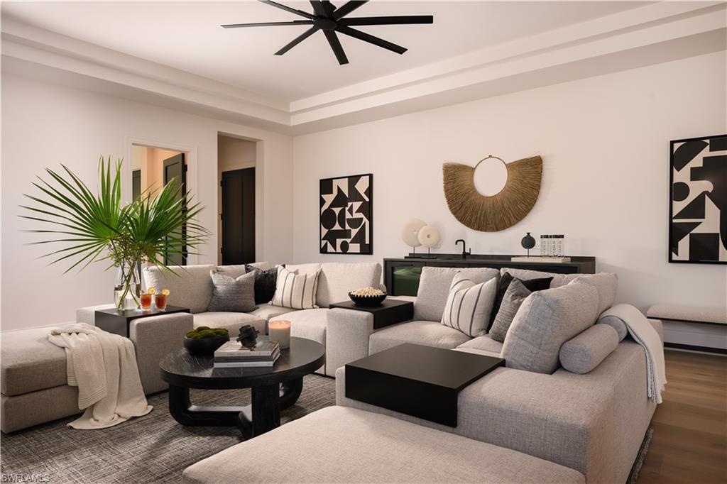 DESIGNER FURNISHED AND MOVE-IN READY! Seagate Development Group and Theory Design present the professionally designed and furnished Coronado Model Custom Home in Palisades, one of Seagateu2019s newest, gated communities in the heart of Naples. This custom home is a collaboration between Seagate Development Group and Theory Design with Architecture by JMDG Architecture, and custom landscape & hardscape design by Outside Productions. Enjoy a modern design with charcoal, linen and dove gray tones, warm stained European White Oak flooring, and wood and wall covering accents throughout. This custom home features 4 bedrooms, study, clubroom, 4 full and 2 half baths, and an oversized 3-car garage. The outdoor living area features electric roll down screens, tongue and grooved stained ceiling, outdoor kitchen, lounge space, pool bath, custom pool with spa and lush landscaping. The main floor has an open floor plan with double stepped tray ceilings throughout. The gourmet kitchen includes custom stacked cabinetry, natural stone backsplash, custom hood, island with waterfall countertop, paneled Sub Zero/Wolf appliance package. The master suite features a sitting area with sliding glass doors leading to the covered lanai. The master bathroom features honed marble floors and comes equipped with Kohler plumbing fixtures including a private water closet, dual vanities, soaking tub, and spacious shower with 3 showerheads. The custom staircase leads to the second floor which offers 2 VIP guest suites and a clubroom with a built-in bar with undercounter beverage fridge. Additional luxury features include 9.45u201d European White Oak wood floor throughout the main floor and clubroom, custom built-in closets, 1 u00beu201d solid interior doors, Emtek door hardware, linear HVAC diffusers in common areas, level 5 drywall, double pane Andersen impact windows & doors, Control4 home automation system, sound system, spray foam insulation, custom iron front door, natural gas, lush landscaping, and interior designer selected custom light fixtures and furnishings. Palisades is an enclave of 25 custom homes situated in a premier Naples location with abundant amenities. Palisades is only minutes away from Mercato, Waterside Shops, 2 Ritz-Carltons, and other exceptional shopping, dining, and beachfront destinations. Seagateu2019s portfolio of companies specialize in custom homes, renovations, interior design, estate management, and land development. Together, bringing exceptional concierge levels of service to everything we do. SALES CENTER OPEN DAILY. This listing contains rendering photos.