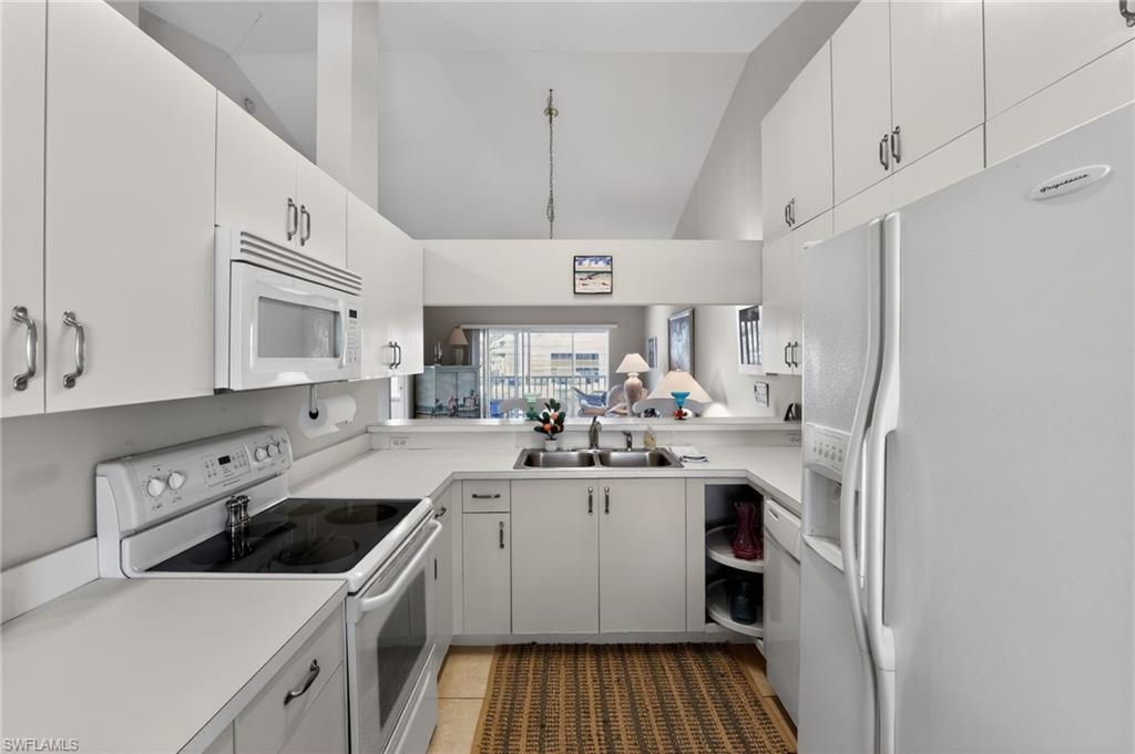 This 3-bedroom former model condo is only 1 of a few 3-bedroom units available in all of Palm River and 1 of only 2 that come Turnkey furnished! This is your opportunity to purchase a rear bird. The unit has an awesome long lake view with an island that Heron nest on and pool view. You have open parking in front of the unit and a carport right next door. This 2nd floor unit has voluted ceilings, beautiful lake views from the master bedroom that you wake up looking at.