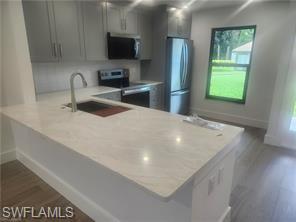 Welcome to this spacious and well-appointed 2-bedroom, 2-bathroom condo located in the Spanish Pines community in North Naples. Boasting approximately 1,377 square feet of completely remodeled space, brand new appliances, new counter tops, new flooring and more. This residence features an expansive, screened lanai that presents serene views of the lake and resort-style pool, perfect for morning coffee or evening relaxation. The unit is thoughtfully designed with an open living space ideal for entertaining or everyday living. The property comes with one covered parking space and a convenient storage closet. The condou2019s setting provides that perfect balanceu2014peaceful and tucked away, yet just minutes from premier shopping, dining, golf courses, and the beaches of North Naples. This home offers a fantastic value. Experience relaxed Florida living in a community that's close to everything yet feels like home the moment you step inside.