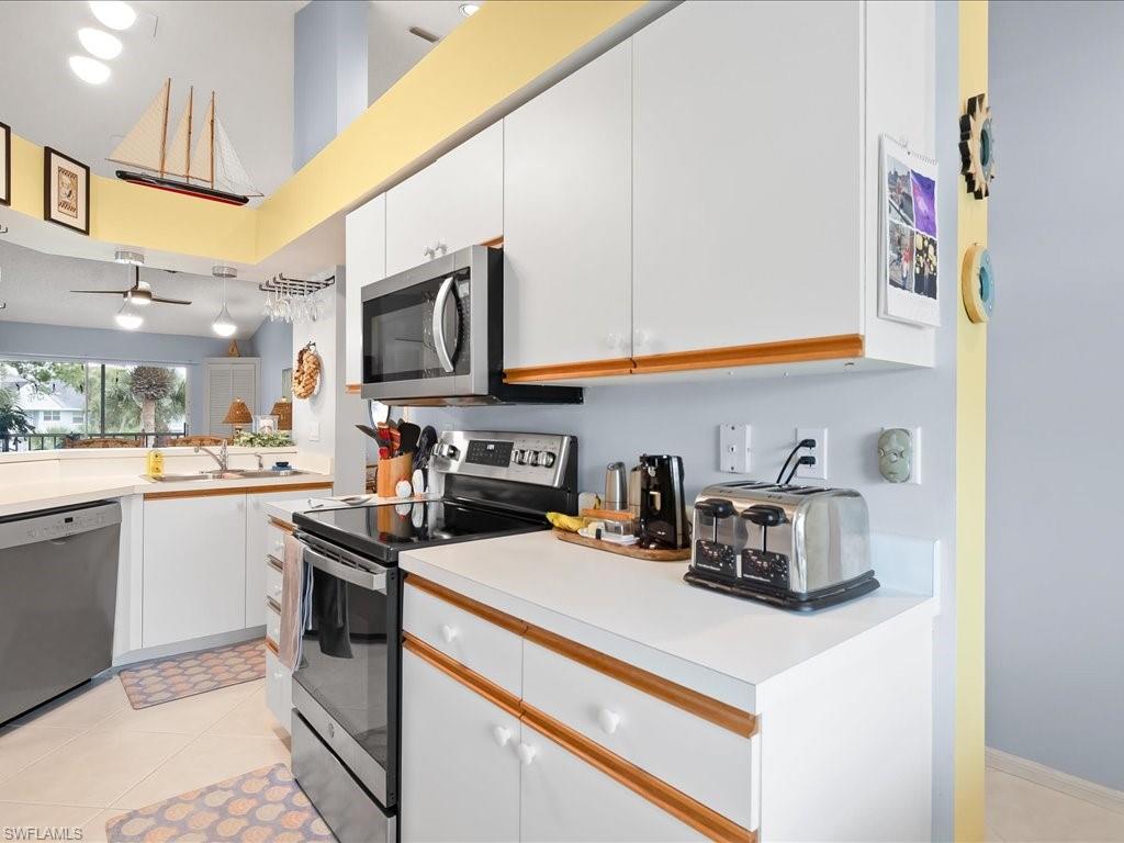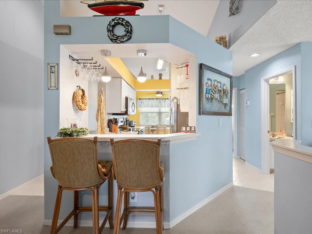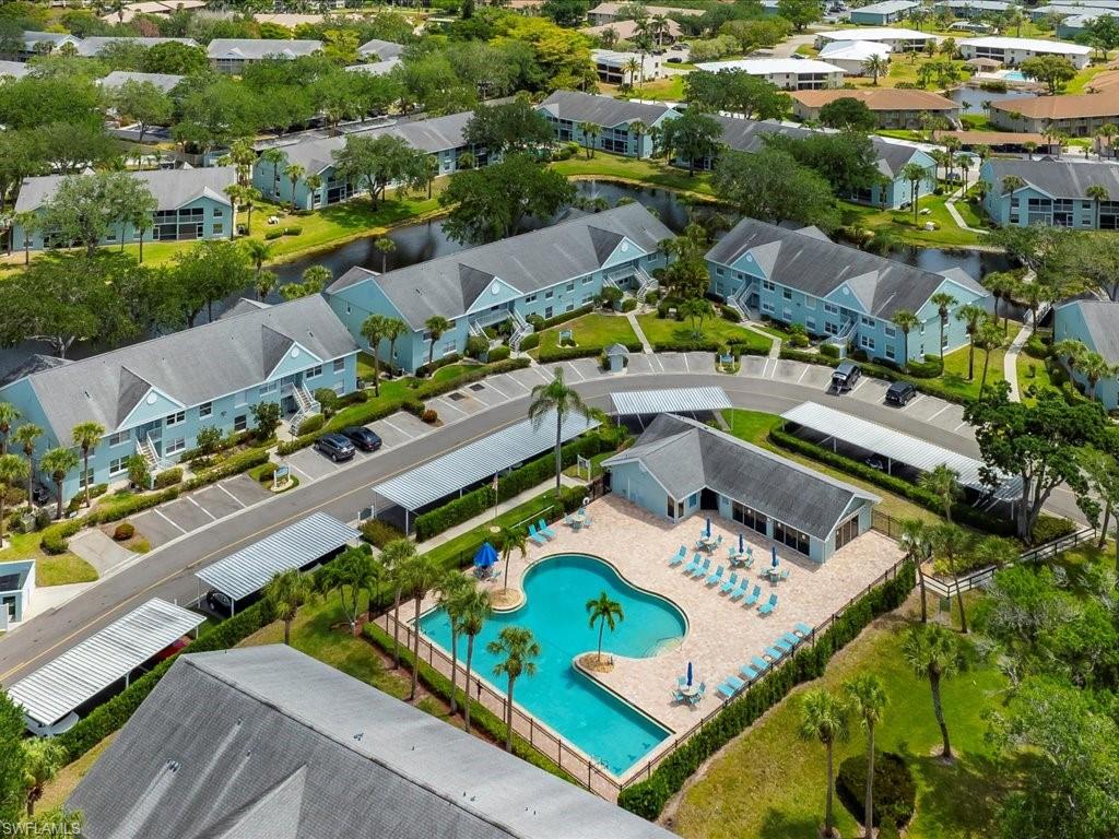 This two plus den upstairs END unit is move-in ready. It feels very warm, inviting and more like a home vs. just a condo. Vaulted ceilings in the great room create great volume as well as a large, open feeling. Split bedroom floor plan. The primary suite has an updated bathroom as well as a large walk-in closet with custom barn door entry. There are also custom built-ins in the primary suite and great room. The eat-in kitchen with breakfast bar has newer stainless-steel appliances and there is also a newer HVAC, water heater as well as IMPACT WINDOWS THROUGHOUT. Relax on the private screened lanai with no other units/buildings within close proximity. There is also an electric shutter protecting the lanai and deeded carport space included which is located right across from the front of the building. Great location just steps to the large, resort-style community pool and clubhouse. Thereu2019s also a second/satellite pool. Piperu2019s Pointe is a very well-maintained complex with good reserves, no special assessments and low condo fees. THE CONDO FEES ACTUALLY WENT DOWN THIS YEAR. Also pet friendly and not a 55+ complex. Prime North Naples location close to everything and not located in a flood zone.