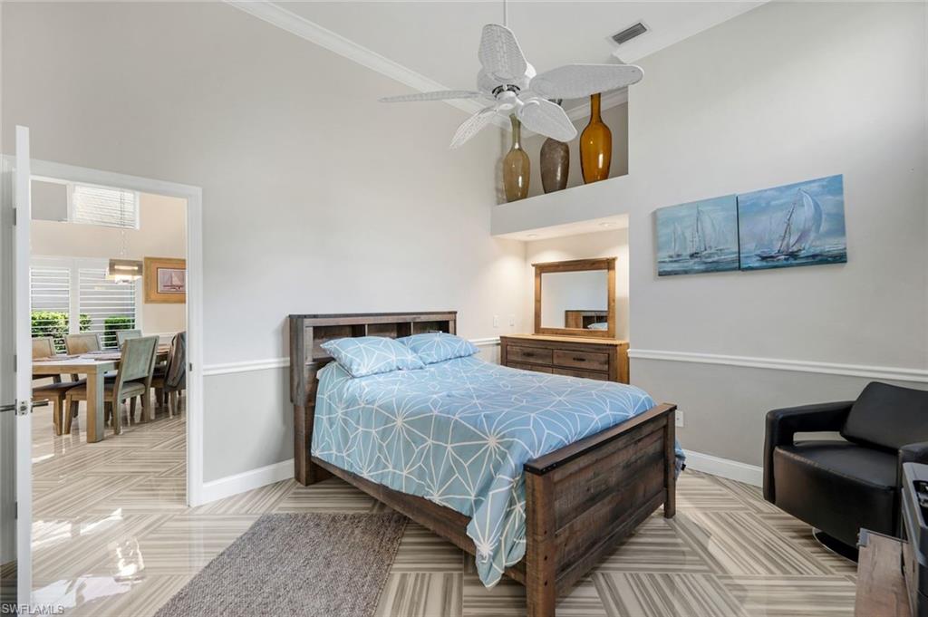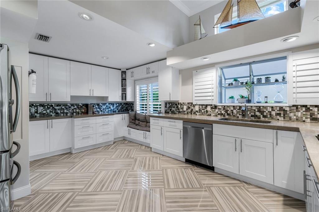 Can be purchased turnkey furnished!!!! Welcome to The Crowu2019s Nest, the coolest home in Quail Creek Village, and easily one of the most unforgettable homes in all of Naples. Strategically redesigned and rebuilt over nearly eight years, this 3 bedroom, 2.5 bath residence is the result of a true labor of love, combining contemporary chic design with a luxurious resort like atmosphere. One of a kind details have been carefully incorporated to create the ultimate lifestyle, starting in the modern chef's kitchen. Poured in place, thick concrete countertops, an induction hibachi cooktop with its own advanced vent hood, Samsung appliances, and extraordinary amounts of cabinetry check every box for both design and function. The open concept living space, made possible by demolishing and reconfiguring the original floor plan, is perfect for all sorts of gatherings and relaxed everyday living. Natural light floods the great room through plantation shutters, while crown molding and diagonally laid tile highlight the homeu2019s blend of timeless and trendy elements. The newly built western facing addition is your canvas for a potential media room, stunning home office, or to be used how it is currently as a conversation sunroom where laughs are shared and views are enjoyed; this space can also be closed off from inside through French doors for true u2018al-frescou2019 living. Onto the lakeside outdoor paradise, the tiled patio is fully loaded with furnishings, a gas firepit, a motorized sun awning, and electric shades and screens with sunsets even more remarkable than the gorgeous interior. The owneru2019s private sanctuary suite features a spa inspired bath with dual rain showerheads, a soaking jet tub, floor to ceiling tilework detail, a European style bidet, and even an electric fireplace. Guests enjoy equally inviting accommodations with two bedrooms and an eloquent bathroom setup with double showers, scalloped accent wall tile, a floating vanity, and ample closet space. The renovationu2019s new golf cart garage provides room for two cars and a golf cart as well as the homeu2019s extended paver driveway. The Crowu2019s Nest comes complete with curated furniture, original one of one artwork, decor, kitchenware, televisions, fireplaces, and yes, even the golf cart. Exclusively located within the Quailu2019s Nest enclave of Quail Creek Village, you will enjoy access to a private cabana and pool steps away which only 53 properties can take advantage of. Homeowners also have the privilege of Social Membership included in the fees with unlimited summer golf, reciprocal play, bocce, tennis, pickleball, and social events at the redone clubhouse. With a proven history as a seasonal rental, this could also be an exceptional opportunity for investors seeking upside potential. Bring your clothes, toothbrush, and step into an unparalleled, resort like lifestyle. EXTENSIVE UPGRADE LIST IN SUPPLEMENTS!