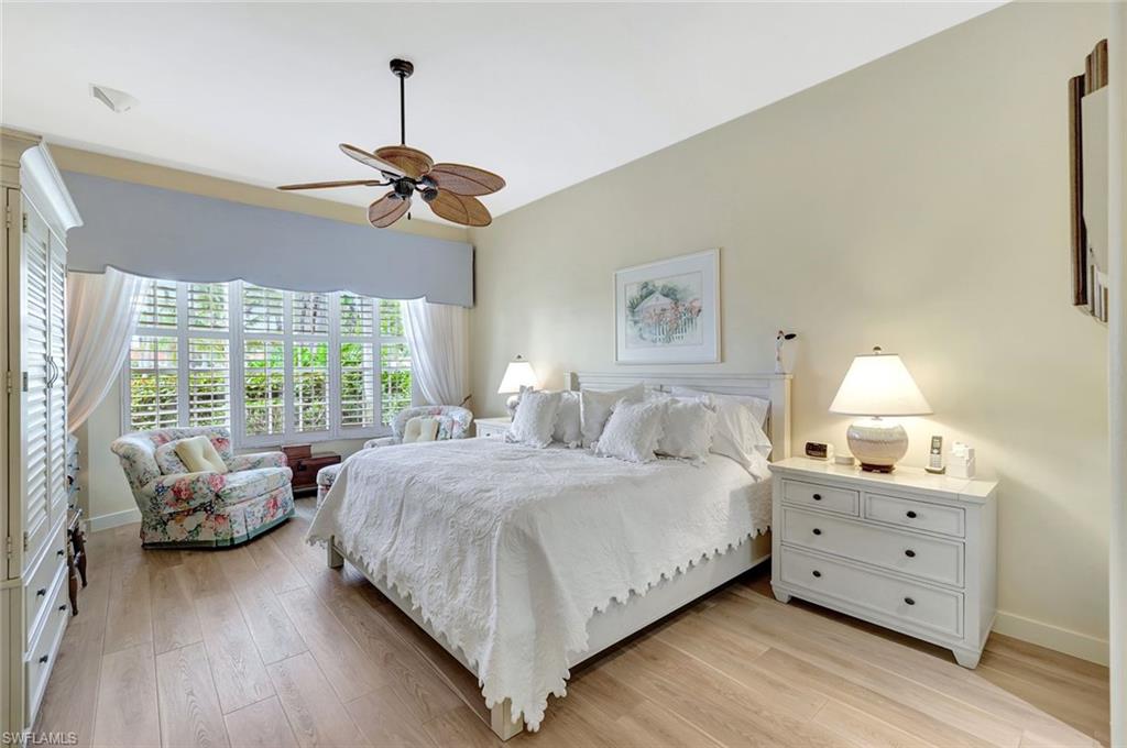 Originally crafted as the showcase Arthur Rutenberg model home, this residence was designed to impress and remains the only one of its kind ever built in Quail Creek Village. From the moment you arrive, the lush courtyard and garden entry make a statement of elegance and distinction. The home has been fully repiped, an important and invaluable upgrade within the community, while a whole house generator is powered by a 500 gallon propane tank added on the property. Electric storm screens protect the entire lanai, providing effortless privacy and low maintenance living. Don't miss your very own golf cart that can convey with the property! Soaring 12 foot ceilings and transom windows fill the space with natural light, creating an airy, inviting atmosphere. Elegant wood look tile flooring runs throughout the home, complementing the plantation shutters, custom Italian stonework, and refined architectural details. An air conditioned garage adds year round comfort and convenience, a rare feature in the neighborhood as well. Finally, the outdoor paradise boasts a wide covered lanai space and a sparkling pool and spa with a soothing waterfall, all overlooking picturesque lake and golf course views. Located within the Quail's Nest enclave, residents enjoy access to a private pool and cabana just steps away. A social membership is included for homeowners to Quail Village Golf Club, with full golf memberships available for purchase with no waitlist.