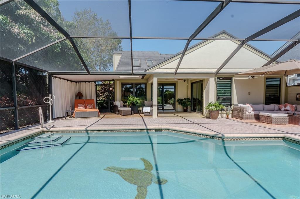 Spectacular and truly one of a kind, this turnkey furnished, architecturally distinctive residence offers an exceptional blend of style, comfort, and resort-style living. A charming garden courtyard entry welcomes you into a light-filled interior featuring skylights, soaring volume ceilings, and an open, inviting floor plan.The home has been beautifully remodeled with an entertaineru2019s dream kitchen, showcasing an expansive layout with generous bar and island seating, propane gas cooking with an in-ground tank, and instant hot water at the sinku2014perfect for hosting casual gatherings or lively dinner parties.Seamless indoor-outdoor living is achieved with impact-resistant glass sliders that open to the community's largest brick-paver lanai. This extraordinary outdoor retreat features multiple seating and lounging areas, a heated saltwater pool, and stunning southeastern golf-course views, creating the ultimate setting for relaxation and entertaining.Significant upgrades include a metal roof installed in 2020, skylights, a Ring security system with three cameras, and a built-in safe for added peace of mind.This thoughtfully designed floor plan features three bedrooms, three full baths, and abundant natural light throughout. Additional features include a spacious eat-in kitchen, laundry room with sink, an oversized primary suite with a walk-in closet, and beautifully updated bathrooms.The package includes a two-car garage, a golf cart for easy access around the community, a prime location within walking distance of the clubhouse. Golf membership at Quail Village Golf Club is available.A rare opportunity to own a truly distinctive, move-in-ready home with exceptional upgrades, outstanding outdoor living, and a coveted golf lifestyleu2014this is must-see.