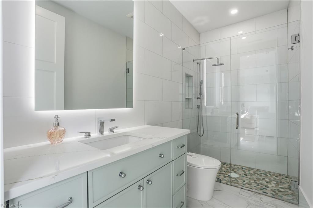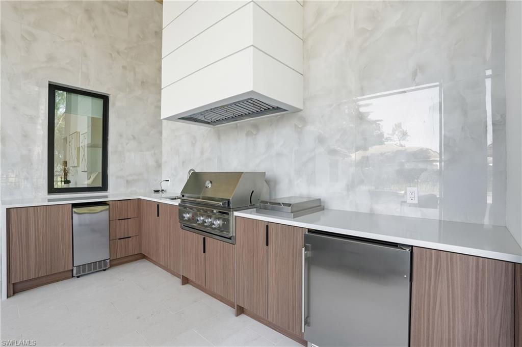 Pond Apple perfection. Completely reimagined in 2024u20132025, this exceptional residence in Quail Creek Country Club offers a rare blend of architectural refinement, modern luxury, and thoughtful expansion, delivering the look and feel of new construction within one of Naplesu2019 most established golf communities. A 1,000u00b1 square-foot addition introduced a second luxurious primary suite, bringing the home to 4 bedrooms, 2 primary suites, a private office, 5 full baths, and a 3-car air-conditioned garage, totaling approximately 4,100 square feet under air. The home has been fully rebuilt from the inside out, including a redesigned front elevation with a striking modern luxury entry portico, instantly elevating curb appeal. Inside, soaring 14u201316 foot ceilings, 10-foot Marvin impact windows and doors, floor-to-ceiling tile details, custom feature walls, and extensive downlighting define the clean, contemporary aesthetic. The chefu2019s kitchen is a true showpiece, featuring Wolf and Sub-Zero appliances, a 6-burner Wolf gas range, custom cabinetry, exposed beams, and seamless flow into the main living and entertaining spaces. A custom wine wall and wet bar with Sub-Zero refrigerator further enhance the homeu2019s entertaining appeal. Every major system has been replaced or upgraded, including three new air conditioning systems, a new roof, spray foam insulation, new insulated garage doors, electric blinds throughout, and fully replaced and resized hurricane-impact windows and doors. Outdoor living has been completely redesigned, highlighted by a total pool renovation with an added sun shelf and elegant marble decking, creating a true resort-style setting. A covered lanai with outdoor kitchen, Storm Smart hurricane screens, and peaceful views of the 13th fairway with a fountain visible in the distance complete the outdoor experience. The property also features new irrigation, new sod, professional grading, and a bold modern square brick-paver driveway. This move-in-ready residence offers the rare opportunity to enjoy new construction quality, design, and systems in a premier golf community, combining timeless surroundings with todayu2019s most sought-after luxury finishes.