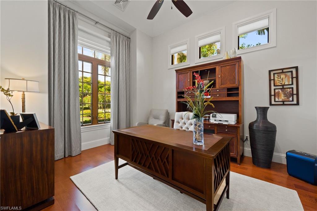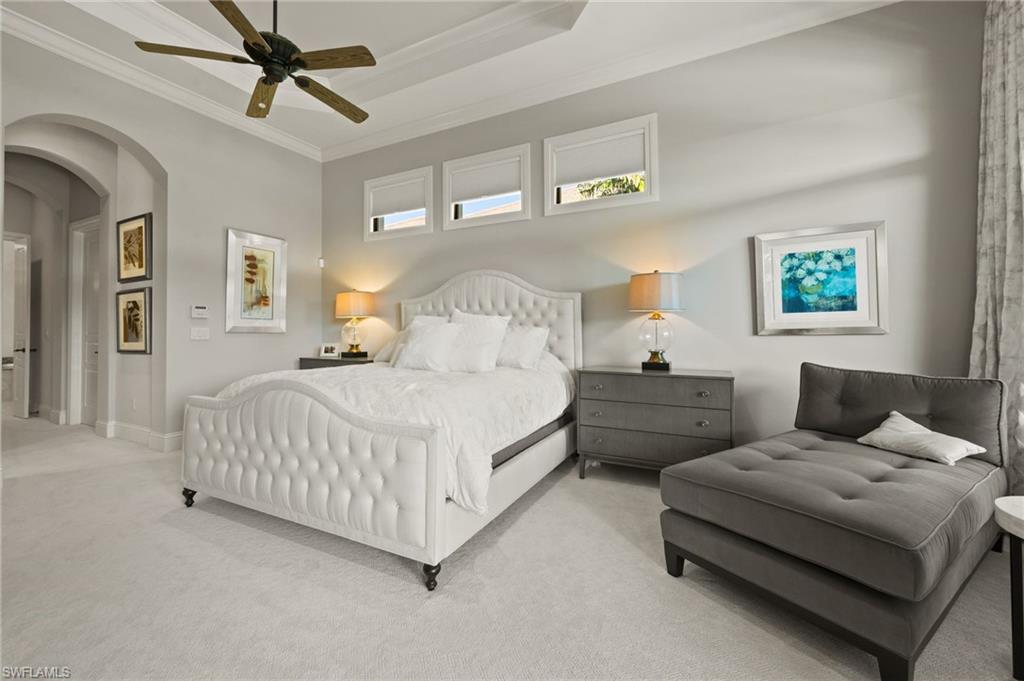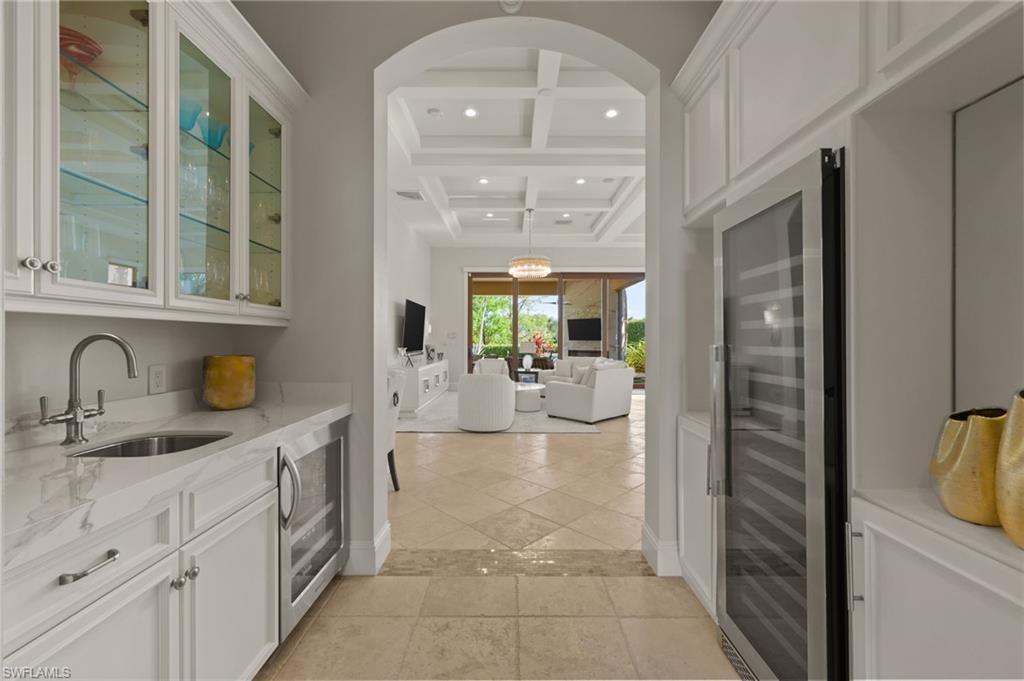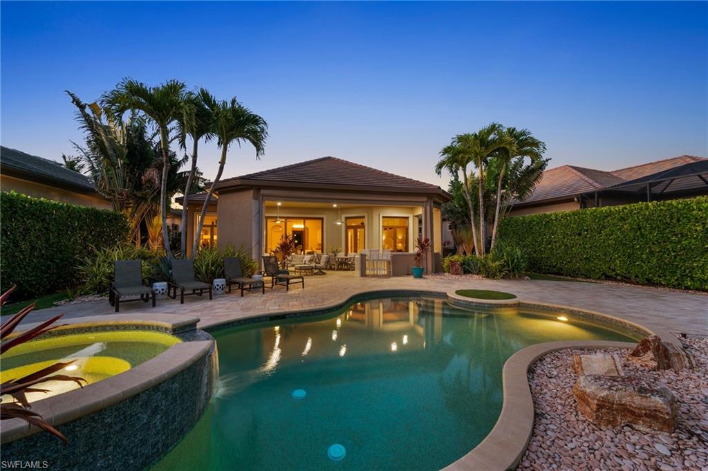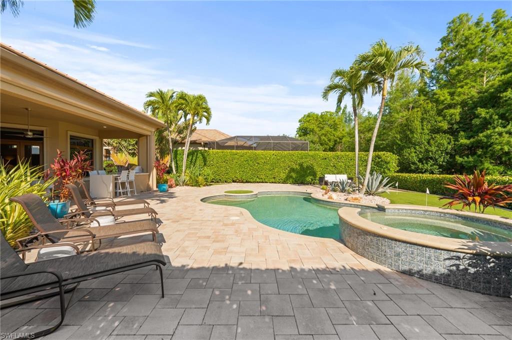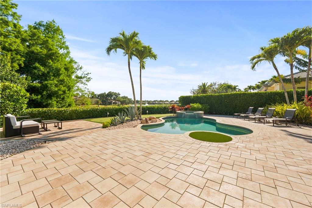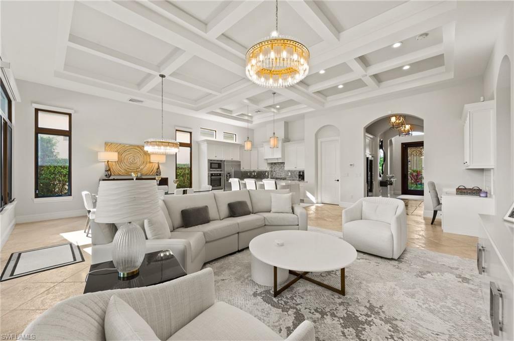 Step into this beautifully updated residence where classic architecture meets modern sophistication. Thoughtfully redesigned by Clive Daniels, this home blends Florida charm with contemporary flair. The open floor plan lends itself to entertaining with a bright and airy great room highlighted by a glamorous TV wall and opening to the gourmet kitchen with white cabinetry, stainless-steel appliances and a reverse osmosis system. The adjacent dining area offers spectacular outdoor views and features Clive Daniel custom-designed furniture and new chandelier lighting. As you tour the home, you will find that every detail has been curated with updated, upgraded elements to elevate the SWFL living experience such as spa-inspired bathrooms, room-darkening shades, stylish wallpaper, new window treatments and lighting. The emphasis is on living spaces for entertaining or simply a quiet retreat. Of course, the highlight of every Florida home is the outdoor space, and this home exceeds anyoneu2019s wish list. Completely re-imagined by Clive Daniels is the new outdoor kitchen featuring a porcelain island and feature wall, new gas fireplace, television and outdoor furniture arranged to accommodate both dining and relaxation. New retractable screens and a new putting green add to this fun-filled space where you can drink in the water, golf and perfect southwest sunset views!