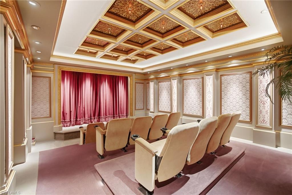 Experience true luxury living on one of the most premier lake and golf course homesites in all of Quail West. Perfectly positioned to capture sweeping water and fairway views, this exceptional estate offers an unparalleled Southwest Florida lifestyle defined by privacy, elegance, and extraordinary outdoor living.This expansive residence features 5 bedrooms, all ensuite, 1 dedicated office, 1 additional full bath, 1 additional half bath, and multiple gathering spaces designed for both grand entertaining and everyday comfort. Enter through handcrafted double doors into a dramatic foyer highlighted by marble flooring, soaring coffered ceilings, and a striking fireplace anchoring the grand salon. Floor-to-ceiling windows frame tranquil lake and golf course views, seamlessly blending indoor and outdoor beauty.The chefu2019s kitchen is both functional and refined, showcasing a gas range, prep island with sink, rich wood ceiling detail, and effortless flow into the inviting family room with zero-corner sliders opening completely to the outdoor living areas. A formal dining room and adjacent wet bar create an ideal setting for elegant evenings.The main-floor primary suite is a private retreat featuring a spacious sitting area, beverage center, spa-inspired bath with jetted tub and multi-head shower, dual walk-in closets, and a dedicated fitness space.A first-floor theater room that transports you back in time provides a nostalgic and immersive cinematic experience, offering yet another exceptional entertaining venue for family and guests. Upstairs, a loft-style game lounge with wet bar and two additional guest suites with private balcony access create the perfect environment for hosting extended family or large gatherings with ease.The outdoor living experience is truly extraordinary u2014 a beautifully screened lanai with wood ceiling, outdoor kitchen, heated pool and spa, multiple private patio areas, and a stunning portico with sunken seating and fireplace overlooking the lake. A spiral staircase leads to an upper balcony ideal for sunset views and evening stargazing.A negotiable and nearly immediate transferable golf membership is available at Quail West Golf & Country Club, allowing the next owner to step seamlessly into one of Naplesu2019 most prestigious golf lifestyles.This is more than a home u2014 it is a legacy property and architectural masterpiece within one of Southwest Floridau2019s most distinguished communities.