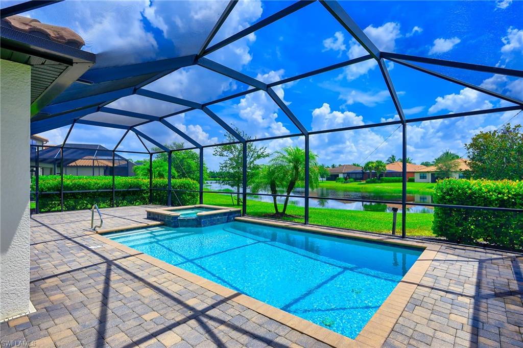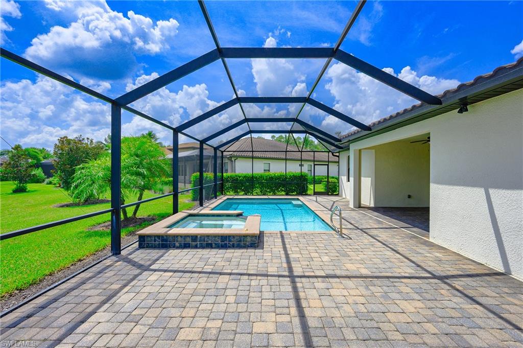 Welcome to this Pool home with peaceful lake view on an Oversized lot in Raffia Preserve! You will love the stunning outdoor living space along with the Comfortable interior layout of this Summerville II floor plan. Luxury features throughout- Relaxing Outdoor space with screened in pool & spa, volume & tray ceilings, designer grade cabinetry & countertops, Huge Primary Bathroom and closets = Two additional bedrooms and Full baths And a study / playroom/ flex room... Plus - a THREE CAR GARAGE!!! Raffia Preserve is a gated community w/ 184 acres of land w/ 72 acres designated to nature preserves and lakes. Fantastic location- 8 miles from the shoreline of Vanderbilt Beach, 15 minutes from the shopping & dining of MERCATO, and short drive to championship golf courses and public parks. This community is in one of the best school districts in SWFL and it has activities for every member of the family- resort style pool, 2k sq ft fitness area, clubroom, tot lot playground area, basketball court & open space that spans across 2.4 acres.