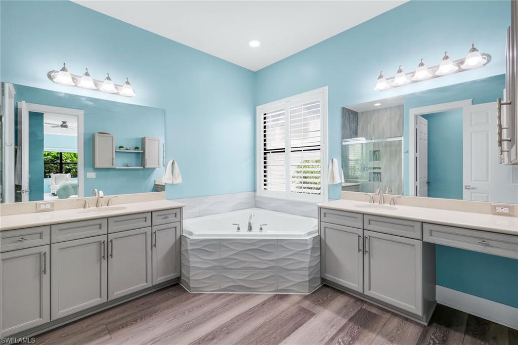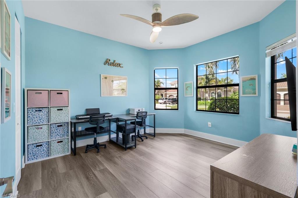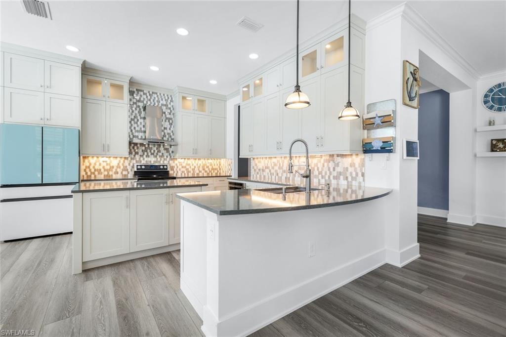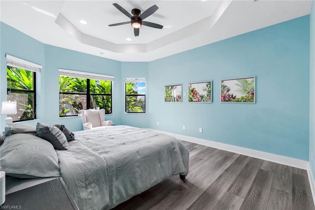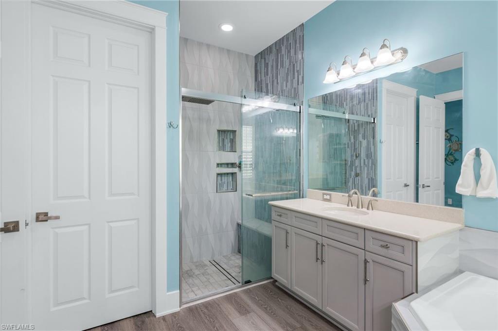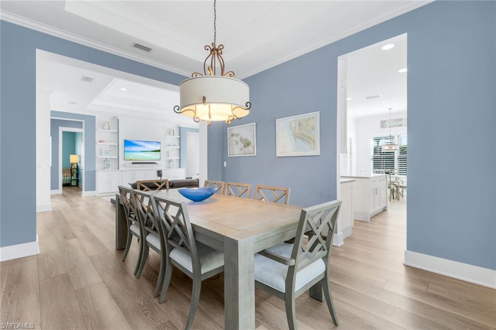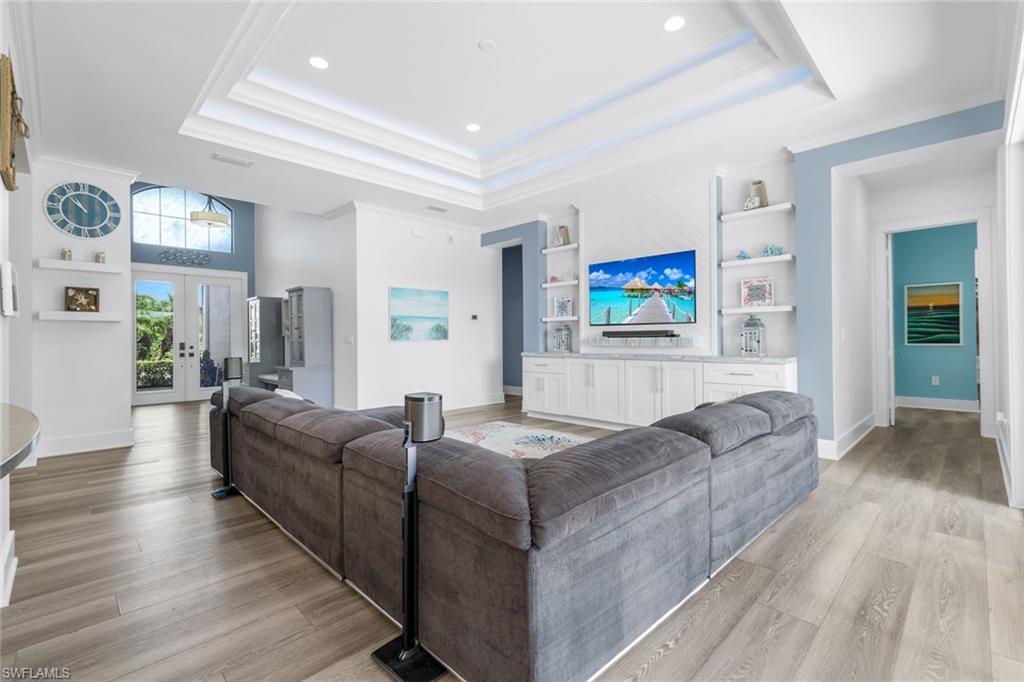 Escape the ordinary and discover your own private oasis. This updated Riverstone home offers 2,609 sq. ft. of beautifully refreshed living space and a backyard designed for both relaxation and playu2014perfect for enjoying the vibrant Naples lifestyle. Step inside and be greeted by a soaring 14-foot foyer that opens to a bright and inviting great room, complete with a custom built-in, shiplap accents and a dramatic double trey ceiling with color-changing uplighting. Entertain with ease in the remodeled gourmet kitchen featuring granite counters, floor-to-ceiling shaker cabinetry with glass accents and lighting, pull-outs, pot drawers, a vented hood, tile backsplash, and a central island. A Samsung Bespoke refrigerator, newer appliances, and a casual dining nook complete the chefu2019s dream space. The spacious primary suite is a true retreat, offering room for a sitting area, two custom walk-in closets, and a stunning updated bath with frameless glass shower, rain head and jets, a liner drain, and re-tiled tub surround. Thereu2019s room for everyone with three additional bedrooms, with versatility to use one as a den, office, or hobby room, plus two guest baths. Fine finishes include built-in closets throughout, LVP flooring, plantation shutters, tall baseboards and crown molding. A finished laundry room with 2024 LG washer/dryer, cabinets, and sink add both function and style. Peace of mind comes with a new A/C system (2024) with UV light and Iflow cleaning system. Out back, discover your own outdoor oasis. A custom, extra-large heated saltwater pool (2022) with sandblasted marble paver lanai anchors a private, fully fenced, landscaped setting. Relax or dine under the covered lanai, enjoy music through outdoor speakers, and let evenings glow with permanent LED soffit lighting. A fenced yard with lush landscaping and playset makes it as practical as it is fun. Located in Riverstone, a social, vacation-inspired community zoned for `A` rated schools. Recreation area includes a fitness center, social hall, resort & lap pools, spa, 5 Har-Tru tennis courts, basketball & pickleball court, tot lot & activities coordinator. Why wait for a vacation to feel tranquility when you can experience paradise every day?