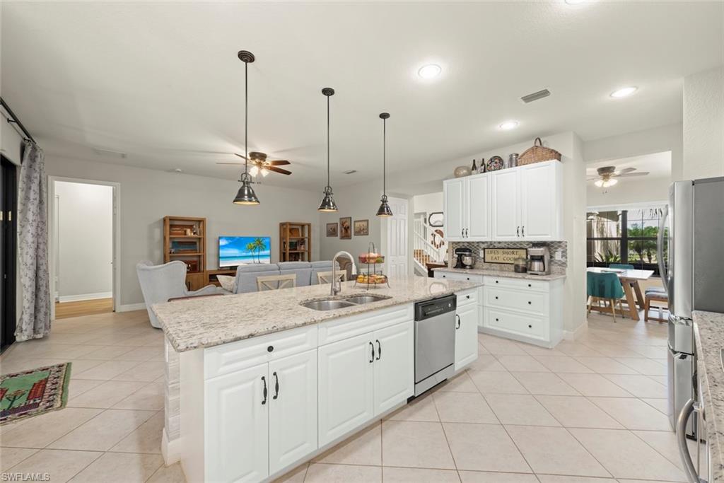Step into a home where comfort meets elegance in the heart of the highly desirable, gated community of Riverstone at Naples. This beautifully maintained 4-bedroom, 4-bathroom residence offers everything you need u2014 and more u2014 to enjoy the Southwest Florida lifestyle to its fullest. From the moment you walk in, youu2019re greeted with a sense of space and warmth. The thoughtful layout includes a den for working or unwinding in privacy, a bright loft perfect for movie nights or a cozy reading nook, and both a living room and family room for relaxed gatherings with loved ones. The kitchen is the heart of it all u2014 with stainless steel appliances, ample storage, and plenty of counter space to prepare meals, snacks, and everything in between. Step outside to a fenced backyard where kids can play, pets can roam, or you can simply unwind in the warmth of the sun. With new AC units (2022), Solar panels and a Tesla Powerwall (2024), and hurricane shutters (2025) already in place, youu2019ll enjoy peace of mind, comfort, and energy efficiency for years to come. Beyond your front door, Riverstone offers a vibrant, active lifestyle the whole family will love. Spend weekends at the resort-style clubhouse, complete with a huge pool, lap pool, hot tub, and a childrenu2019s waterpark and tot lot. Stay active with tennis, pickleball, and basketball u2014 or enjoy time together in the fitness center, billiards room, or community events hosted throughout the year. Located just minutes from top-rated schools and a short drive to Naplesu2019 best beaches, restaurants, and shops, this home truly offers the best of family living u2014 with space to grow and a community that feels like home.