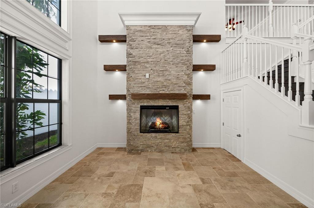 Highly Motivated Seller with recent $100k price reduction!!Welcome to an exceptional Riverstone residence where elegance meets modern luxury! This stunning home features a Primary Suite on the first floor, along with 5 bedrooms, 4 full bathrooms, and a spacious 3 car garage. The thoughtfully curated layout is designed for multi-generational living with three refined living spaces. Upon entering the salon area, you are welcomed by natural light streaming through two-story windows adorned with beautiful trim work. Grab your favorite book and relax in front of the custom stone Fireplace adjacent to a built-in bar with wine fridge. A versatile upstairs loft is perfect for a lounge area and already equipped for an office with a built-in desk. The sophistication and impeccable attention to detail in the Kitchen has not gone unnoticed. Featuring timeless, top-level cabinetry displayed in a staggered design, glass uppers, oversized lower drawers, custom end-panels, a coffee bar, stainless-steel appliances, a striking granite waterfall island, abundant storage, and custom backsplash - all connected to the family room in a seamless open-floor concept ideal for entertaining and everyday living. Beautiful Travertine floors, Custom trim work and window casings reside throughout along with plantation shutters in the dining room. The main floor provides another guest bedroom with a full bathroom. Upstairs boasts three guest bedrooms with two full baths, new carpeting, and engineered wood flooring in the loft area. The laundry room features front-loading Washer and Dryer complemented by built-in cabinets for added storage. Indulge in long lake views on the Extended lanai with Travertine tiles for a tranquil outdoor retreat. Freshly painted interior and exterior plus new epoxy garage floors surrounded by lush, meticulous landscape add to the character of the home! Enjoy Resort-style living at Riverstone offering an extensive list of amenities including a 13,000 sq ft Club House, resort-style pool and spa, lap pool, childrenu2019s wading pool, state-of-the-art fitness center, and yoga studio, 5 lighted Har-Tru tennis courts, Indoor and outdoor basketball and Pickleball courts and more! Located in the prime North Naples area near beaches, shopping, and dining, this is the perfect home for comfort and convenience!