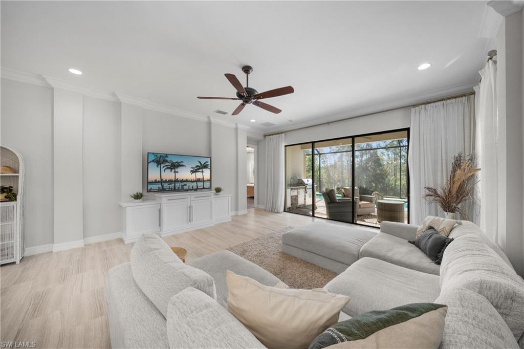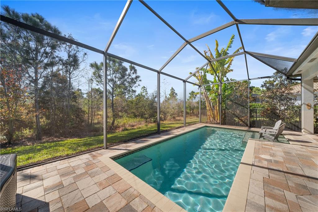 Nestled overlooking a private and protected preserve, this meticulously maintained `Tribeca` floorplan home offers 2234 sq. ft. of luxurious living space in the amenity rich community of Riverstone in North Naples. With 3 bedrooms, den, 2.5 baths, and a 2 car garage, this residence provides ample room for family living and entertaining. The split floorplan includes an open Great Room floorplan with a 14u2019 slider to the lanai and separate formal dining room. The updated Kitchen includes solid raised panel cabinetry with pull outs, china display cabinet, and over/under cabinet lighting. Enjoy the Florida sun around the heated pool with sunshelf and al fresco dining under the covered lanai complete with outdoor kitchen. Southern rear exposure makes this home light and bright all day long! A long list of notable features include: BRAND NEW HVAC & HOT WATER HEATER; 12x24 tile floors throughout the common areas and high end engineered wood floors in the bedrooms; plantation shutters; crown & detail moldings throughout; easy to use accordion hurricane shutters; widened brick paver driveway; recessed lights in each room; and more! Located in Riverstone, North Naples' premier community, this home offers access to incredible amenities, including a clubhouse with a fitness center, indoor/outdoor basketball courts, a resort-style pool, lap pool, kiddie water park, playground, 5 tennis courts, billiards room, social hall, game room, and more. Riverstoneu2019s prime location is just minutes from I-75, the beach, Mercato, RSW, and downtown Naples. Top-rated schools are nearby, including Laurel Oak Elementary, Oakridge Middle School, and Aubrey Rogers High School. Low HOA Fees of just $1,515/quarter which includes all clubhouse amenities, gated entry, home landscaping, home irrigation water, and home irrigation system maintenance.
