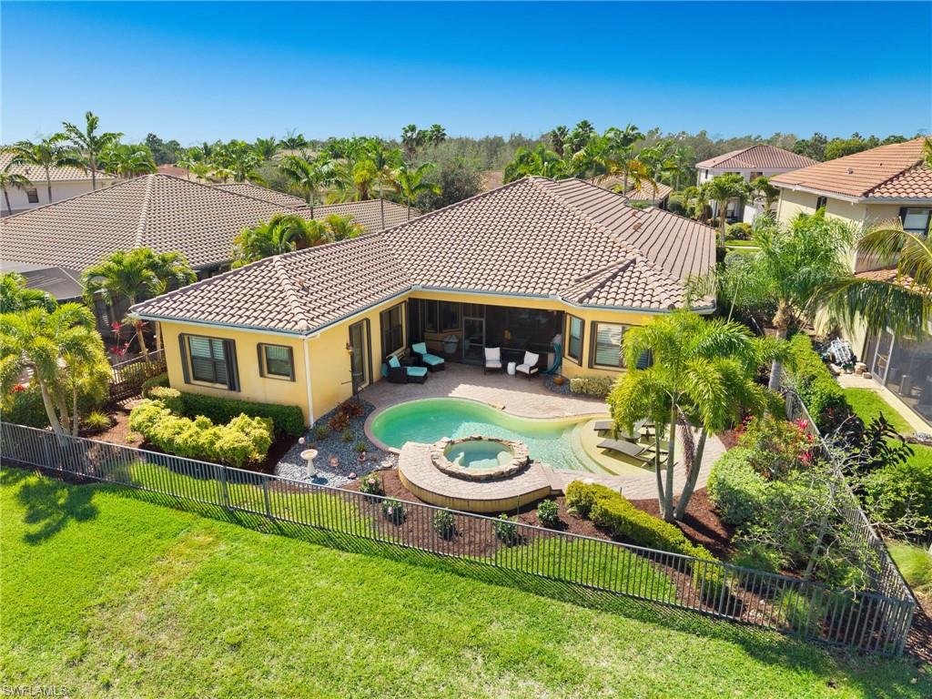 This beautifully designed 4 bedroom + den, 4 bath single-family home offers over 3350 square feet of living space and showcases the developers sought after Drake model floor plan. Thoughtfully designed with soaring ceilings, the home features an open and spacious layout that creates an inviting and elegant yet generous living areas, ideal for both everyday living and entertaining. A dedicated den/office provides flexible space perfect for working from home, a library, or additional guest accommodations. Step outside to enjoy the screened in lanai area, complete with summer kitchen, a private pool and spa overlooking the lake, creating a perfect setting for relaxing or hosting family and friends, while enjoying the outdoor Florida lifestyle. With its spacious design, impressive ceiling height, and desirable floor plan, this home presents an exceptional opportunity to enjoy comfort, style, and indoor-outdoor living at its finest!