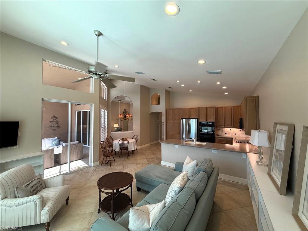 Immaculate Pearl Floor Plan in Saturnia Lakes u2013 Designer Upgrades, Southern Exposure, Move-In Ready!Welcome to this rarely available Pearl model in the highly sought-after, gated community of Saturnia Lakes in Naples, Florida. Meticulously maintained and professionally designed, this 4-bedroom, 2.5-bathroom single-family home offers over 2,678 square feet of elegant living space with premium upgrades throughout including Impact windows.From the moment you arrive, youu2019ll appreciate the extra-wide paver walkway, curved entry step, and double front doors with impact-resistant glass inserts, perfectly complementing the home's architectural details.? Interior Features & Designer Finishes20` diagonal porcelain tile throughout main living areasUpgraded carpet in the spacious primary suite with private sitting areaLuxury vinyl or wood-look floors in guest bedroomsChef-inspired kitchen with deluxe cabinetry, stainless appliances, and oversized pantryElegant bathrooms with upgraded cabinets and designer fixturesCustom closets, window film, plantation shutters, and motorized blindsWall finishes and textures curated by a professional interior designerGarage-Tek custom garage storage system included?? Outdoor Living & SecurityResort-style pool with screened lanaiMotorized storm shutters around the covered lanai for quick protectionSouthern rear exposure offers natural light all dayProfessionally landscaped with tropical curb appeal?? Community & LocationSaturnia Lakes is a gated, amenity-rich community offering a clubhouse, fitness center, resort pool, tennis, and moreu2014all just minutes from dining, shopping, top-rated schools, and Gulf beaches.?? Donu2019t Miss This OpportunityThis move-in-ready home with luxury upgrades and a high-demand southern exposure lot wonu2019t last long. Perfect for full-time residents or seasonal buyers looking for security, style, and comfort.