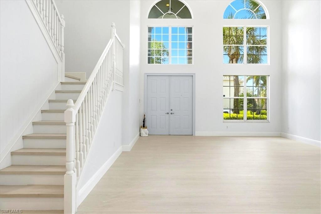 One or more photo(s) has been virtually staged, AI generated or rendered. Spacious u201cSapphireu201d floor plan (4 Bedrooms + Loft / 3.5 Baths / 3-Car Garage / 3,973 sq. ft.) is perfectly situated in the highly sought-after,amenity-rich community of Saturnia Lakes. From the moment you enter, youu2019ll be greeted by soaring 22-foot ceilings, luxury Brand New luxury LVP floors throughoutand an open, light-filled layout with generously sized rooms throughout. The first-floor primary suite is a trueretreat featuring two large walk-in closets, a cozy sitting area, French doors leading to the lanai, and a luxurious bath with dual vanities, asoaking tub, and a brand-new frameless glass shower. Master suite also includes dedicated AC/Heat unit. Upstairs, enjoy a spacious loft/bonusarea, three oversized guest bedrooms, and two full bathrooms u2014 perfect for family or guests. Step outside to your private solar-heated pool and soak up the Florida sunshine! The pool is powered by Brand New pumpsystem. Additional upgrades include Grand chandelier at the entrance and new light fixtures throughout the first floor, Tinted windows in tCalifornia type build in linen, bedroom closets and pantry, a whole-house generator with 2 above ground 120LB (each) propane gas tanks, newroof (2021), roll-down shutters on all windows and doors (automated 1st floor shutters), newer A/C systems with new ductwork, and an electriccar charger. Saturnia Lakes offers resort-style living with a multi-million-dollar clubhouse featuring a heated resort and lap pool, kiddie pool, hottub, fitness center, dance studio, internet cafu00e9, saunas, massage rooms, billiards, ballroom, 4 clay tennis courts, basketball court, putting green,playground, and miles of scenic walking paths and Nature Preserve Park. Located in an A-rated school district and close to shopping, dining, andNaplesu2019 white sand beaches