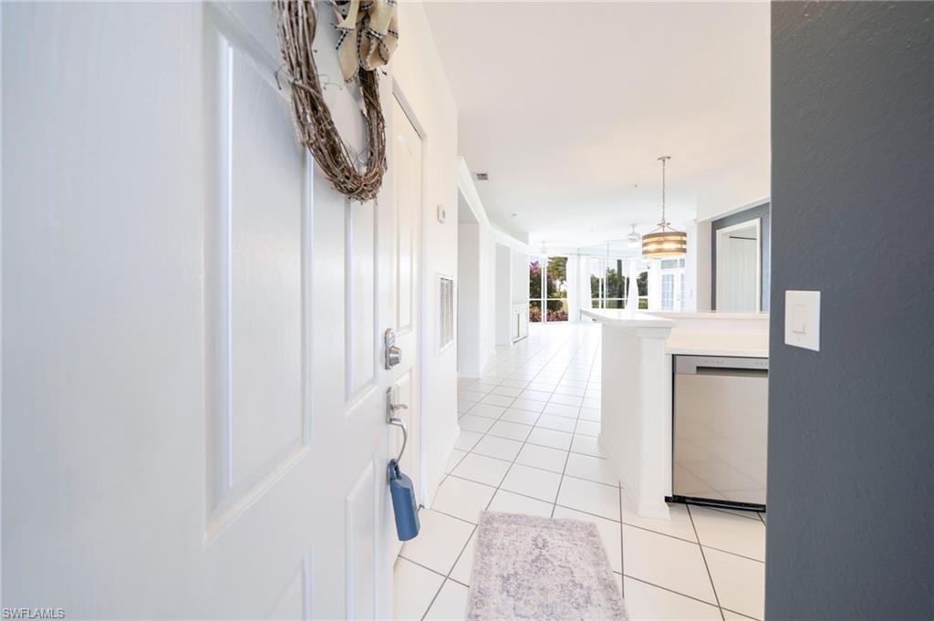 PRICE REDUCED! Light and bright first-floor condo with stunning sunset views! Live your SWFL dream in this beautifully maintained 2-bedroom, 2-bath residence featuring a glass-enclosed lanai that seamlessly expands the living space. Enjoy tranquil views of the preserve and water, creating a peaceful and private setting to enjoy SWFL's famous sunsets.The kitchen is equipped with newer stainless-steel appliances and a newly installed dishwasher. A/C and water heater were replaced in 2019. Washer/Dryer combo replaced in 2024.The primary bathroom has been completely remodeled with gorgeous flooring, a quartz countertop, bidet, new sink and a fabulous walk-in shower with a large double shower head. Tile flooring runs throughout the main living areas, with fresh new carpeting in both bedrooms. The guest bathroom also features updated flooring to match the primary bath.Sliding doors from the guest bedroom open to a charming patio. French doors provide the option to close off one side of the primary bedroom for added privacy and pocket door to close off guest bedroom/bath.Located in the highly desirable Sterling Oaks community, residents enjoy resort-style amenities including a new clubhouse, bocce ball, new redesigned pickleball courts, 12 Har-Tru tennis courts, a junior Olympic-size pool with tiki bar, on-site restaurant, sauna and fitness center. Your maintenance includes: Cable, Internet/WiFi Access, Irrigation Water, Lawn/Land Maintenance, Pest Control Exterior, Reserve, Sewer, Water, trash and security guard. Just minutes from white sandy beaches, shopping, dining, and RSW International Airport - this is Florida living at its finest. Schedule your showing today!