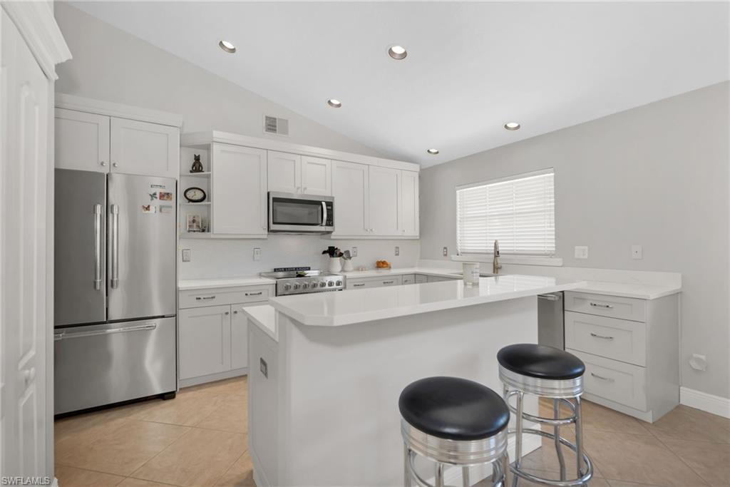 Welcome home to this immaculate and inviting 3-bedroom 2-bath home in the highly coveted Sterling Oaks development. This charming home offers a lovely open floor plan, beautiful large diagonal tile, an updated kitchen with quartz, soft-close cupboards and drawers, stainless Viking appliances and tastefully updated bathrooms. Further enhancing its charm and desirability is the private outdoor patio and wrap-around lanaiboasting a gorgeous preserve view to enjoy coffee, adult beverages entertaining family/guests and peaceful tranquility any time of day with the ideal south-eastern exposure. Many other upgrades include a newer roof, completely redone plumbing, a tankless water heater, new fixtures throughout and fresh paint! The immaculate two-car garage adds storage to the already-ample closet space throughout the interior. The white picket fence adds to the charm and fabulous curb-appeal of this gem! Ideally located a short stroll to the beautiful clubhouse, this home offers access to resort-style amenities including a resort-style pool and spa with cabana bar, pickleball and bocce courts, a modern fitness center with locker rooms and sauna, scenic walking paths, a childrenu2019s play area, and a lovely on-site restaurant offering Friday night dinners, holiday celebrations, and special events. All of this is in an ideal Naples location within minutes of four world-class white sandy beaches, fine dining, shopping, theaters, and endless recreational opportunities. Optional but affordabletennis membership adds even more with 12 Har-Tru courts, professional instruction, clinics, and team play. This delightful home combines comfort, style, and convenience in one of Naplesu2019 most desirable communitiesu2014an exceptional opportunity to enjoy resort living at its finest. Sterling Oaks is in an X flood zone with low HOA fees. Donu2019t miss this opportunity! It wonu2019t last long!