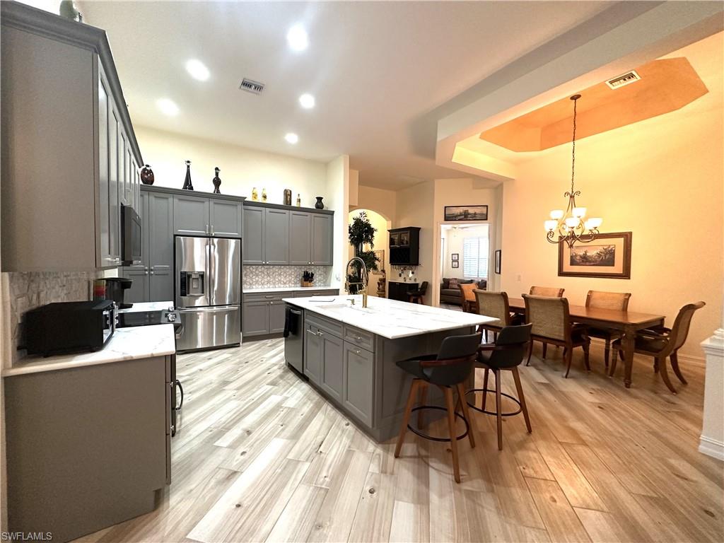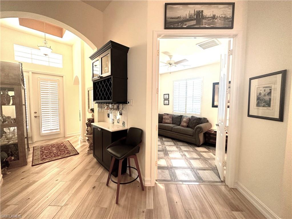 RENTED FOR SEASON 2026! **FABULOUS POOL HOME!** 90 DAYS MINIMUM PREFERRED - NEWLY RENOVATED KITCHEN AND GUEST BATHROOM, NEW FLOORING throughout main area and Master Bedroom! Beautifully decorated and well appointed, this 3 bedroom plus a den pool home with spa has all the comforts of home. Features include vaulted ceilings and an open floor plan. Outdoor living can be enjoyed to the fullest while stepping onto the expansive screened in lanai featuring a private pool, spa and barbecue grill and plenty of outdoor furniture for lounging or entertaining. If that wasn't enough you are surrounded by the many amenities Sterling Oaks has to offer including a clubhouse with an Olympic-sized heated pool and jetted hot tub, poolside Cabana Grille & Bar, bocce courts, pickleball courts and fitness room including menu2019s & womenu2019s locker rooms with showers & sauna. Tennis available with a separate membership transfer fee, quarterly or annually. Located in North Naples, Sterling Oaks is just off of US 41N, convenient for travel to Downtown Naples, Bonita, Estero and Ft. Myers for plenty of shopping, dining and entertainment. Smoking and pets are NOT permitted per the association.