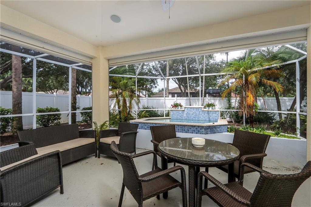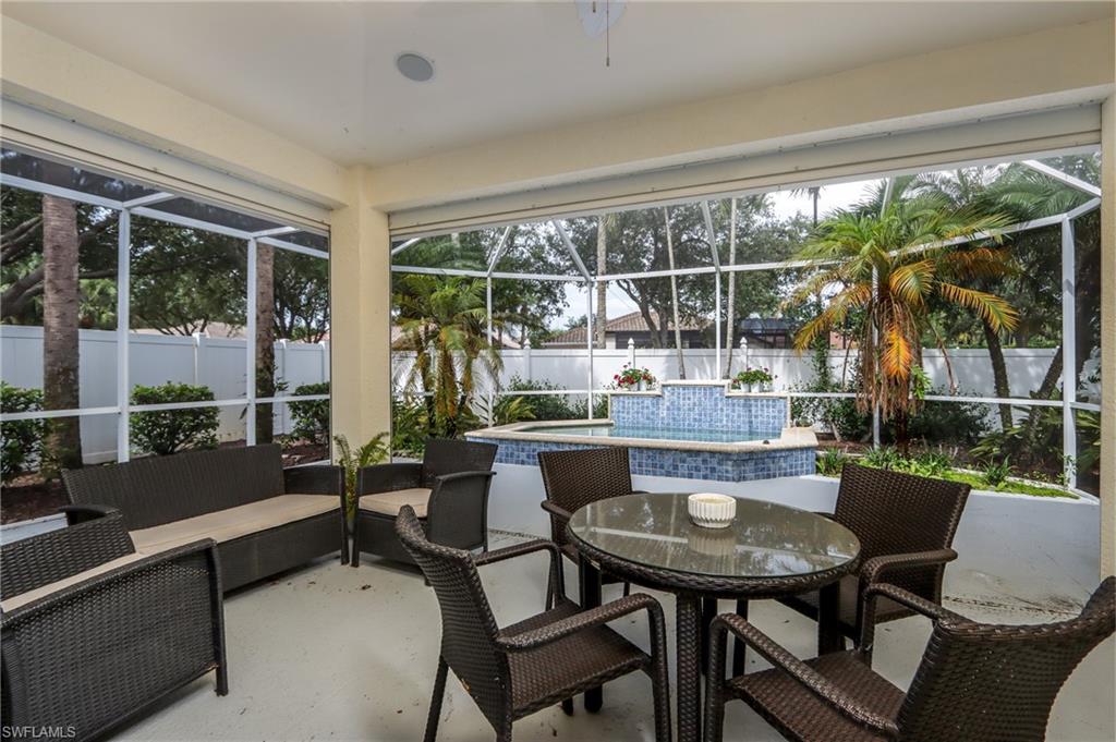 Enjoy your season in this stunningly Renovated 3-Bedroom, 2 bathroom home on Tranquil Cul-de-Sac Location. This impeccably renovated residence offers an exceptional blend of modern elegance and comfortable living. With its inviting open floor plan and high ceilings, this property is designed for both relaxation and entertaining. As you step inside, youu2019ll be greeted by an expansive living area that seamlessly flows into the dining space and fully equipped kitchen. The heart of the home boasts a spacious center island, ideal for meal prep or casual dining. The kitchen is fully equipped generous cabinetry, and sleek countertops. This home features three well-appointed bedrooms, each designed with comfort and tranquility in mind. The primary suite includes a king bed, en-suite bathroom with walk-in shower, and walk-in closets. Two additional bedrooms offer ample space and versatility with trundle beds in each room for extra family or friends. Step outside to discover your private oasis! The covered lanai is perfect for alfresco dining or enjoying your morning coffee while overlooking the lush surroundings. The small heated dipping pool invites you to unwind and relax. This house also features a 2 car garage, WIFI, washer and dryer. Sterling Oaks is a gated community with an abundance of amenities creating an active healthy lifestyle. Enjoy fine dining in the Oak Room or nosh at the cabana by the pool. You can indulge in the fitness center, pickle ball, tennis, basketball and walk or ride your bike around the impressive, expansive property enjoying the meticulous landscaped scenery.