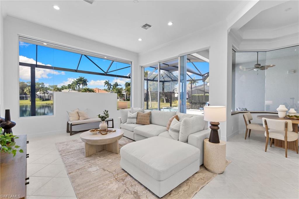 There's a reason Stonebridge estates on quarter-acre lots with water and golf views don't stay available longu2014and 1624 Manchester Court makes that reason clear the moment you step onto the covered lanai. Southwest exposure means afternoon light dances across the water while the 16th tee box frames the backdrop. The 21x40 heated pool runs parallel to 1,471 square feet of outdoor living spaceu2014fully enclosed with dark-finish picture window screening that preserves views while creating year-round usability. This is where Sunday mornings feel less like routine, more like ritual. Inside, 3,526 square feet unfold with a floor plan builders stopped producing: primary suite tucked privately off the living room with lake views through sliders that open to the lanai, while three guest bedrooms cluster on the opposite wingu2014true separation that means visiting family stays a week, not just a weekend. The 23-foot den isn't a repurposed bedroom. It's actual workspace with a door, built-in desk, and room to think.The kitchen opens completely to the family room and morning roomu2014a 40-foot sightline that means Thanksgiving prep happens while conversation flows, not from behind walls. Granite counters, center island, stainless appliances. The kind of kitchen where Sunday breakfast extends into afternoon without anyone needing to relocate.Generator for peace of mind. Bundled Stonebridge golf membership with Kipp Schulties' redesigned championship course, Bistro dining, resort saltwater poolu2014all included. Three miles to the beach, fifteen minutes to 5th Avenue.Quarter-acre estates with 3,526 square feet, separated bedroom wings, and water-plus-golf views are measured in years between listings in Stonebridge. This one rewards buyers who recognize that floor plans like thisu2014with 1,471 square feet of screened outdoor living, actual entertaining space, and true guest privacyu2014don't get replicated in modern construction.