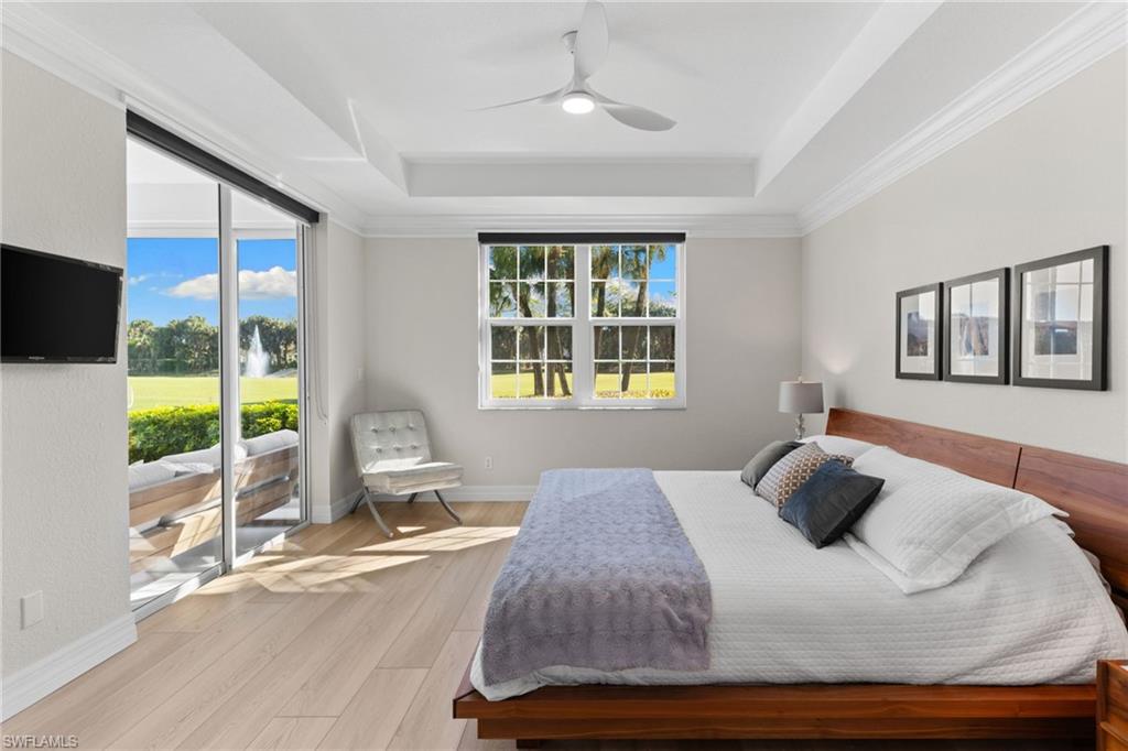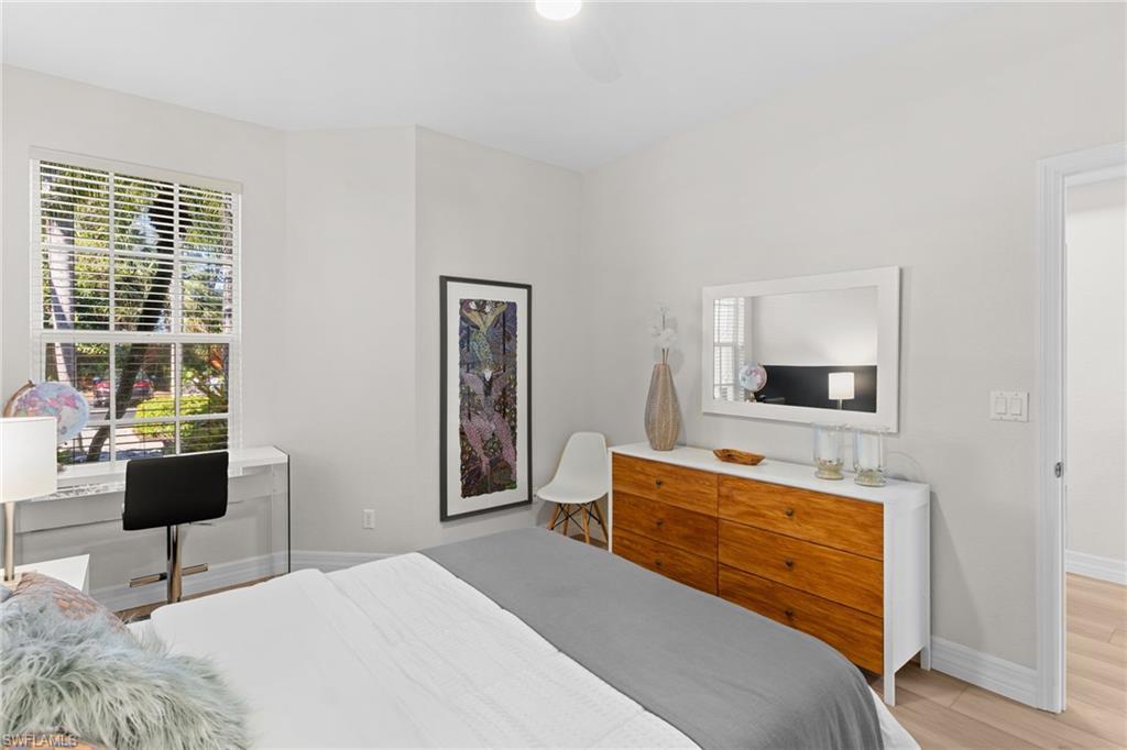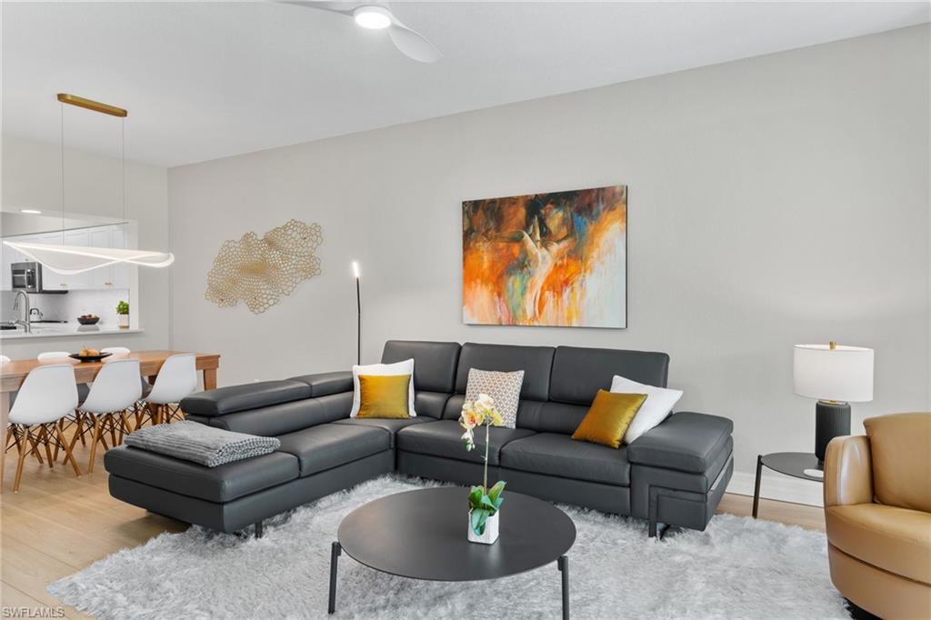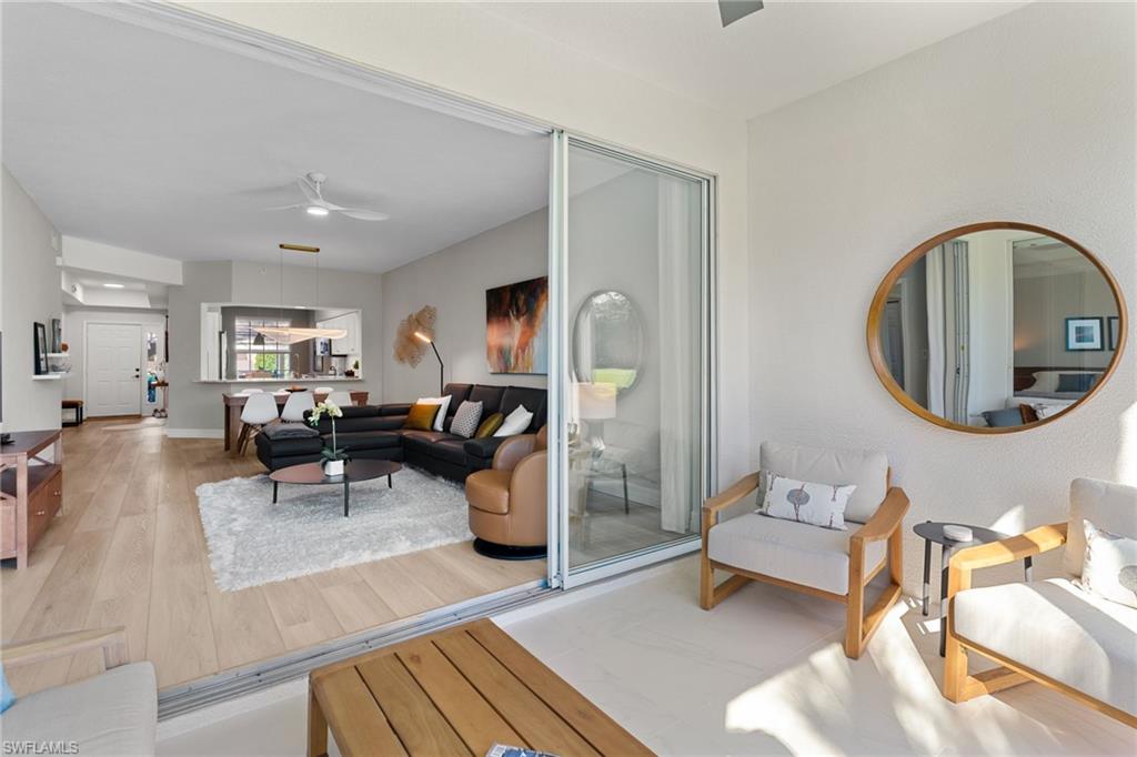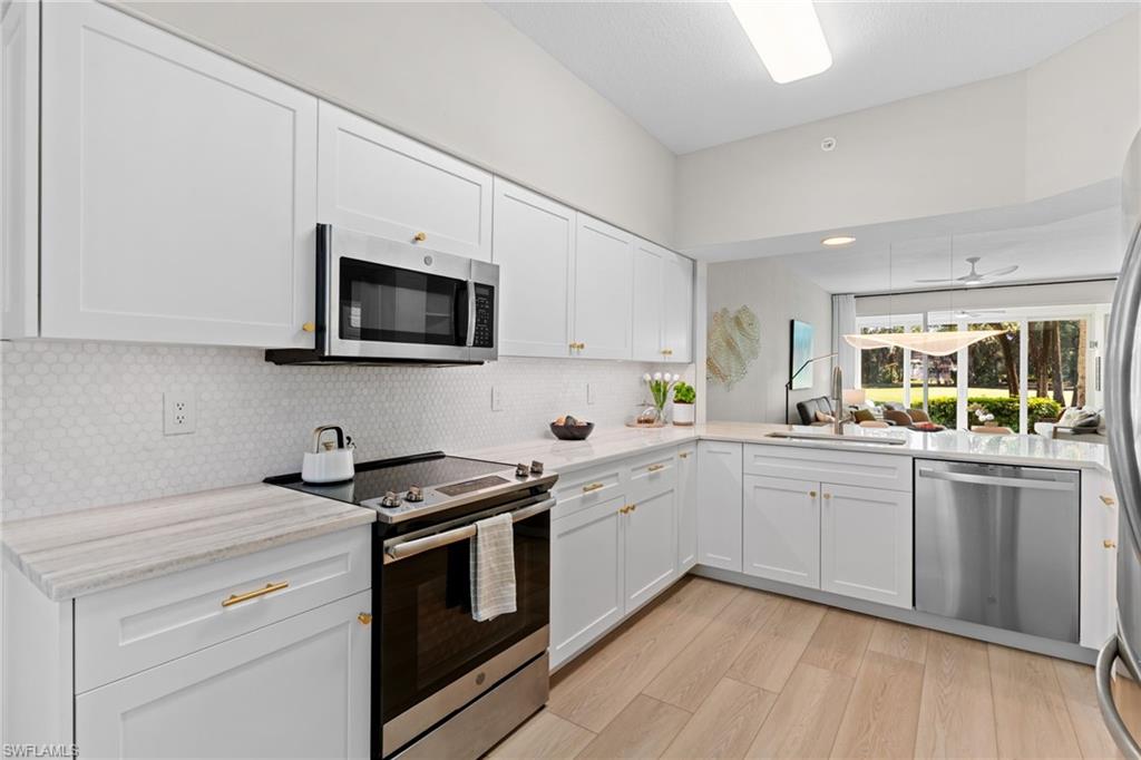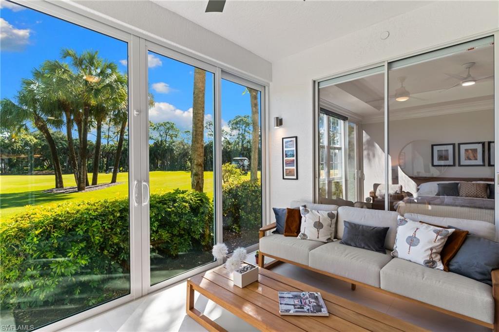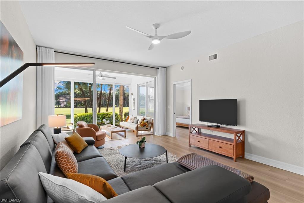 Most Stonebridge properties embrace traditional Florida coastal. 1960 Willow Bend Circle #102 took a different pathu2014floor-to-ceiling glass framing the 10th green, contemporary finishes, and a mid-century modern aesthetic that prioritizes clean lines over ornate details.Morning light floods 1,568 square feet of first-floor living through eastern-facing windows where the 10th green becomes your backyard. The design language is deliberate: light wood-look LVP flowing throughout, white subway tile backsplash, minimalist hardware, and a neutral palette that lets the golf course views take center stage. This isn't builder-grade Stonebridgeu2014it's thoughtfully curated modern design. The kitchen's quartzite counters and stainless appliances handle daily life with understated efficiency.The primary bedroom opens directly to the screened lanai where golf views and morning coffee become ritual. Roll-down screens extend usability year-round, whether you're watching golfers navigate the 10th or simply claiming the quiet before the day begins. The second bedroom provides guest flexibility or workspace that actually has separation.AC replaced July 2025 means immediate peace of mind. First-floor positioning means no elevator waits, immediate lanai access from the living room and primary suite. The kind of layout where indoor and outdoor living blur naturally.Bundled Stonebridge golf membership, Kipp Schulties' redesigned championship course, Bistro dining, resort-style poolu2014all included. But the real value is the aesthetic: a contemporary design approach in a community known for traditional finishes.This represents the increasingly rare intersection of modern design, golf course living, and first-floor convenience in Stonebridge. For buyers who've been waiting for Stonebridge to feel contemporary rather than traditional, this is it.