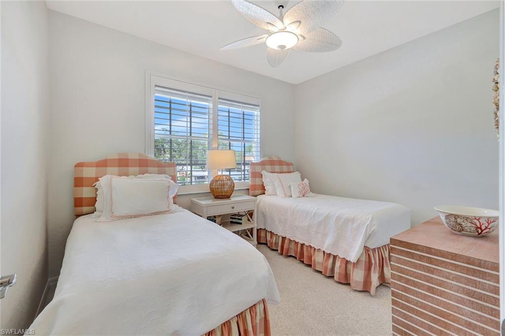 Welcome to your new home in the highly sought-after Stonebridge Country Club. This true bundled golf community is ideally located in prestigious North Naplesu2014just minutes from world-class beaches, shopping, dining, and entertainment. This 2-bedroom, 2-bath second-floor condo is offered TURNKEY FURNISHED, for effortless living, and includes one covered-parking spot, as well. Step inside this light and bright residence to discover soaring volume ceilings, neutral ceramic tile flooring, plantation shutters, in residence laundry, and much, much more. The kitchen features stainless steel appliances, ample cabinetry, and generous counter spaceu2014perfect for everyday living or entertaining guests. The spacious primary suite and inviting guest bedroom provide comfort and privacy for residents and visitors alike. Relax on your screened-in lanai and take in the gorgeous eastern exposure with serene lake and golf course views overlooking the Par-4 14th hole. With newer AC and hot water heater, this home is ready for you to move in and start living your best Naples lifestyle today. Stonebridge is a community where every residence includes a full golf membership and access to an array of resort-style amenities. Enjoy the Gordon Lewisu2013designed par-71 championship golf course, featuring seven sets of tees for every skill level, a vibrant tennis community with five Har-Tru courts, a state-of-the-art fitness center, resort-style pool, and a beautifully renovated clubhouse offering multiple dining venues and social activities year-round. Opportunities like this in Stonebridge donu2019t last longu2014schedule your private showing before itu2019s gone!