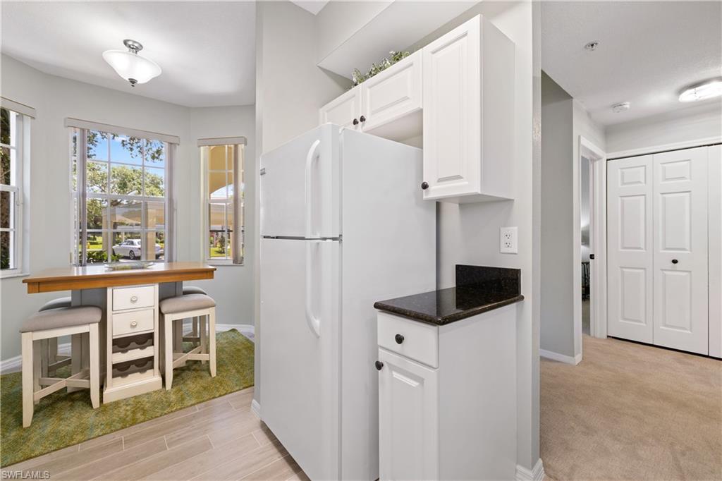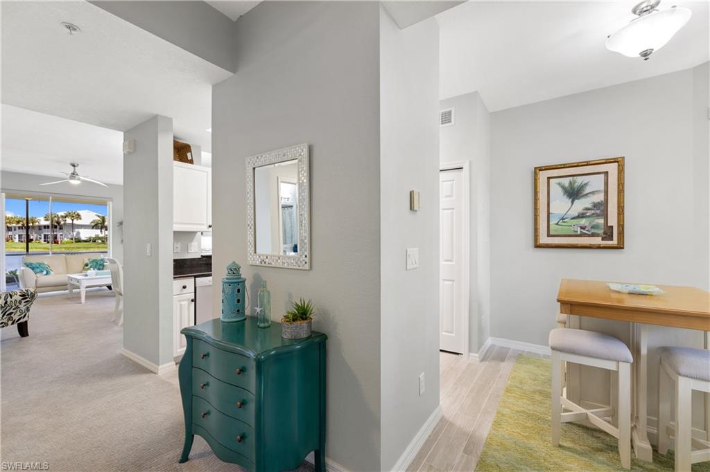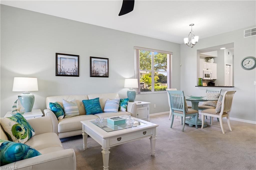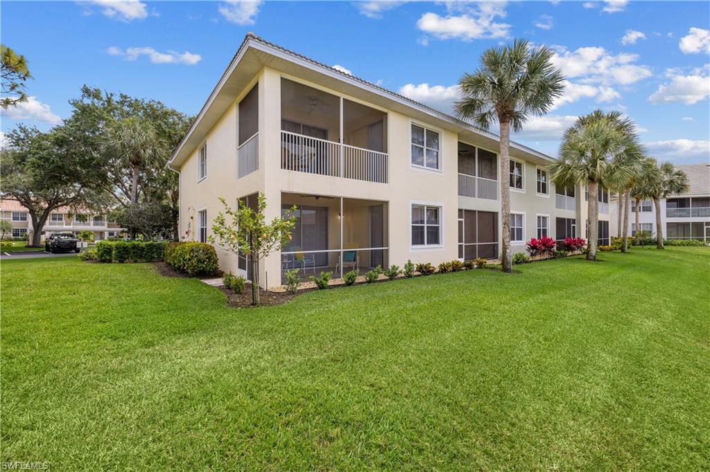 Available for 2026 Off Season Only. Are You Ready for Endless Sunsets? This darling & immaculate 2 BR 2 Bath, 1st floor end unit has rear Western exposure overlooking a lake that will provide non-stop breathtaking sunsets! Decorated in gorgeous coastal colors and furnishings, this unit is offered fully furnished & turnkey. Featuring a split level floor plan along with granite counters and light & bright eating area, along with brand new flooring. Spacious master bedroom with walk-in closet, attached bath with double sinks and a large shower. Separate & private guest room with a large walk-in closet & full bath right next to it. You will love the great room that walks out to a screened lanai offering stunning lake views. Stonebridge is a friendly, amenity rich, gated golf country club community. It has a gorgeous Clubhouse where both fine & casual dining are offered. In addition, there is an attended state of the art fitness center, 5 Har-tru lighted tennis courts, and a very challenging 18 hole golf course. This fantastic North Naples location is 10 minutes to the beach and within minutes to fabulous shopping, restaurants, and nightlife of Mercato.