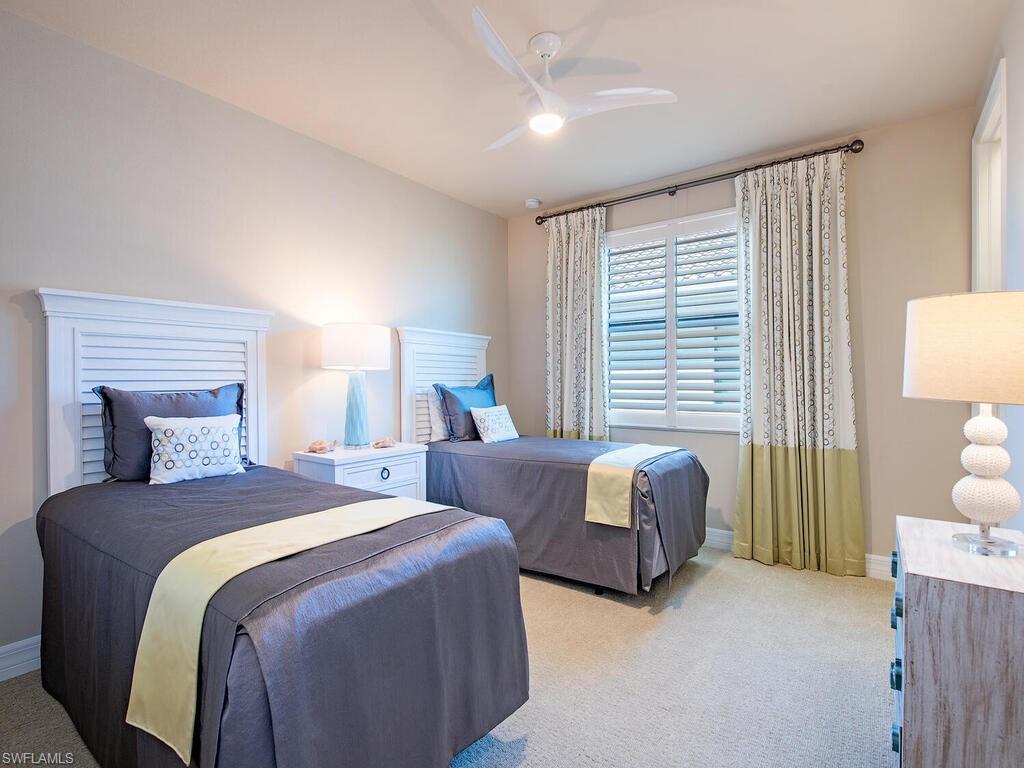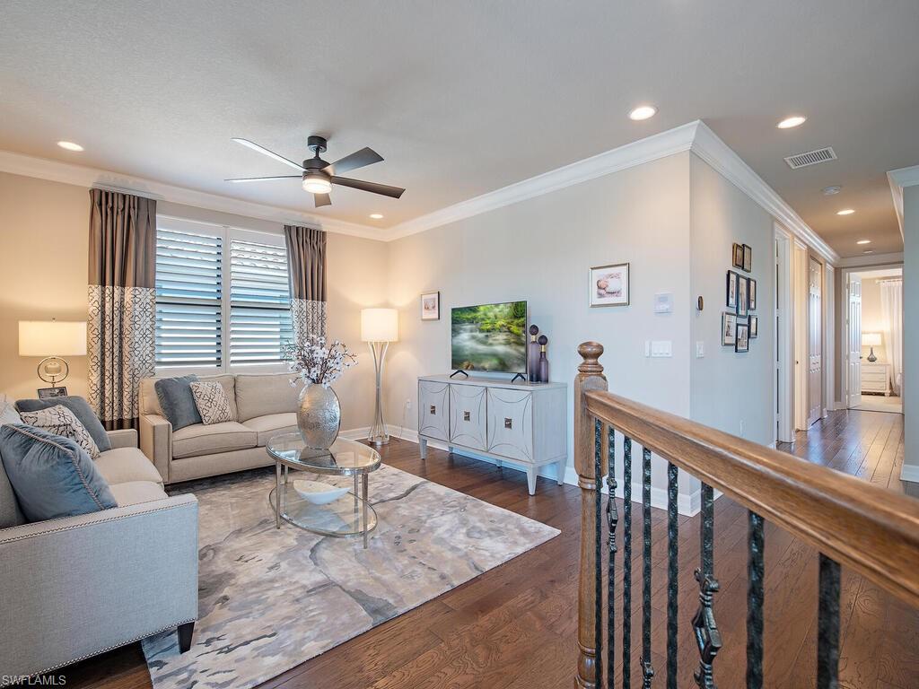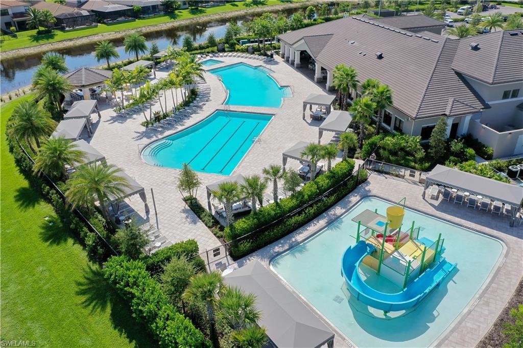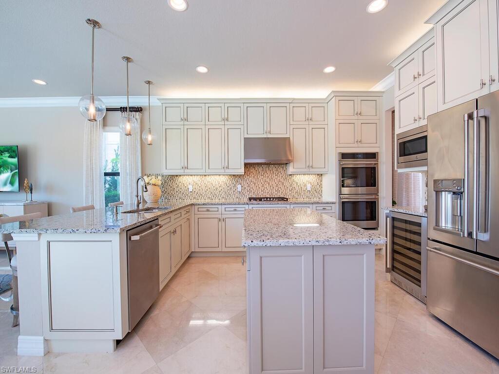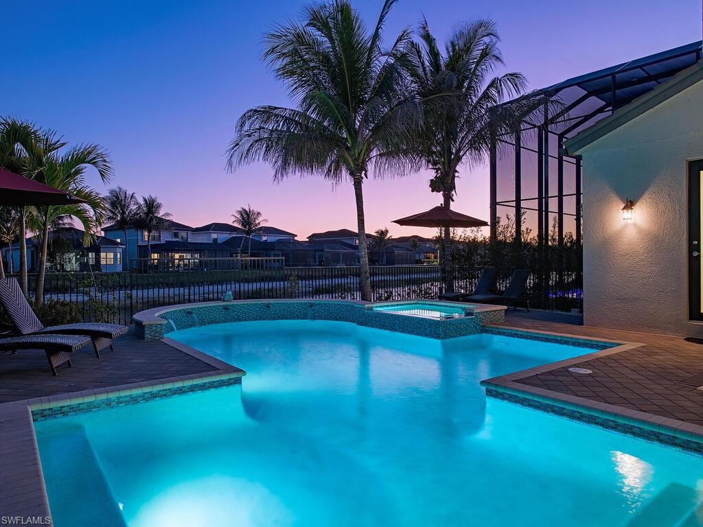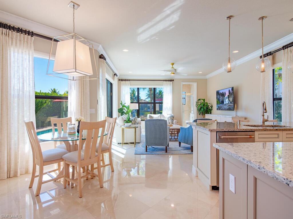 Offering more than 4,100 square feet of refined living, this six-bedroom, six-bath lakefront residence in Stonecreek presents a rare opportunity to live expansively while embracing the effortless elegance of the Naples lifestyle. From the moment you enter, polished marble flooring spans the entire first floor, creating a seamless, luminous foundation that carries you from the welcoming foyer to the sparkling pool and lake views beyond. Designed for both elevated entertaining and relaxed everyday living, the main level unfolds with a formal living room anchored by a striking fireplace feature wall, an elegant dining room, and an inviting family room that flows seamlessly into the kitchen. The gourmet kitchen is as beautiful as it is functional, showcasing glazed cream cabinetry with a contrasting island, GE Cafu00e9 appliances including a double oven and vented hood, granite countertops, ambient lighting, and a walk-in pantry with extended under-stair storage. A first-floor guest suite with adjacent full bath, a convenient mudroom, and a unique, dedicated cabana bath ensure comfort and convenience for both residents and guestsu2014especially after a day poolside. Upstairs, five additional bedrooms and four full baths provide exceptional flexibility. The spacious loft creates the perfect setting for movie nights or a secondary lounge. The primary suite serves as a private retreat, complete with its own balcony overlooking the lakeu2014ideal for sunrise coffee or evening unwinding. Dual walk-in closets and a spa-inspired bath with separate his & her spaces connected by a frameless glass shower complete the sanctuary experience. Refined details elevate the home throughout: plantation shutters, designer drapery, motorized shades, decorator lighting & fans, crown molding, hardwood flooring on the stairs and upper level, an upgraded wood and iron stair rail, tankless water heater, finished laundry room, and hurricane-impact glass for effortless storm preparation. Outdoors, the fully fenced yard is framed by lush tropical landscaping, creating a private resort ambiance. The oversized custom gas-heated saltwater pool and spau2014accented by waterfall sconcesu2014invite long afternoons in the sun and evenings under the stars. Stonecreek residents enjoy a true vacation-inspired lifestyle with a grand clubhouse, resort-style and lap pools, state-of-the-art fitness center, indoor sports court, tennis and pickleball courts, splash pad, playground, and vibrant social spaces. Ideally located in North Naples near I-75, premier golf, upscale shopping and dining, and Naplesu2019 renowned white-sand beaches, this exceptional home delivers luxury, comfort, and the feeling of being on holiday every day.