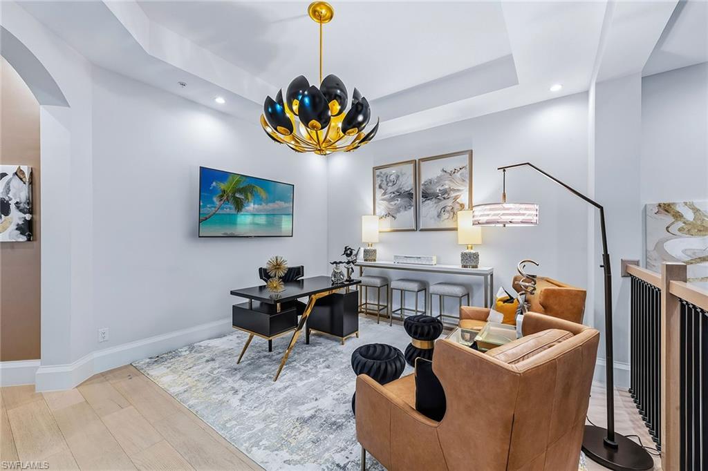 Enjoy the feel of a single-family home while having the low maintenance benefits of a coach home This 3,382-square-foot residence lives like a single-family home. Enter from your private, intimate courtyard into a large open foyer with bright soaring ceilings and a private elevator. This level offers easy access to the enclosed two-car garage. Built in 2020, this entire home has been upgraded with designer furnishings that will wow you. This spacious open floor plan blends indoor and outdoor living effortlessly. From the foyer, you can take your private elevator to the second level or take the stairs to the open loft area which can be used in so many different ways. Office, den or music room, your choice. Two en-suite bedrooms offer privacy for family or guests. The spacious primary bedroom includes double sinks, soaking tub, huge shower as well as a large built out closet. The kitchen is gourmet with a natural gas six-burner cooktop, high-end appliances and a large walk in pantry and laundry room. A bar area with a wine cooler is convenient to the dining room area. The sun-filled living room with its linear fireplace leads directly to the large lanai and summer kitchen with a gas grill and beverage refrigerator overlooking a beautiful, tranquil landscaped area and lake. This coach home is in the much sought-after Talis Park with amenities that include tennis, bocce, pickleball, two pools, fitness, dog park, walking trails, active social events and of course the beautiful award-winning golf course. Talis Park is a vibrant active community where all are welcome!