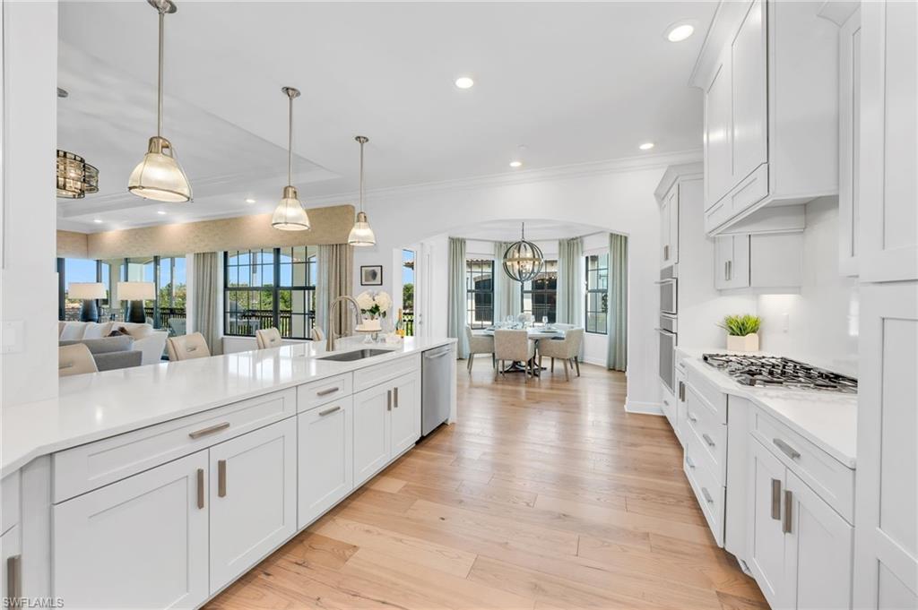 Experience elevated living in this beautifully-appointed Viansa penthouse residence in Talis Park. Built in 2021, this 2,950 square foot residence offers 3 bedrooms plus a den/media room, 3 full baths, and one half bath, all accessible through a private elevator entry that opens into an expansive great room with soaring ceilings, generous millwork and incredible views of the lake and golf course.The gourmet kitchen is a centerpiece of the home, featuring Monogram appliances, extended quartz countertops, a custom tile backsplash, and bespoke wood cabinetry with abundant storage. Just off the kitchen, a dedicated bar area with a double wine cooler and matching quartz surfaces provides the perfect setting for entertaining. The dining and living areas flow seamlessly, enhanced by oak wood flooring, a bespoke built-in media storage, and custom wine cabinetry, opening onto an oversized lanai with northern exposure and spectacular views over the golf course.The primary suite offers generous proportions, a large, custom walk-in closet, and a luxurious bathroom with quartz countertop double vanities, a soaking tub, and a huge, walk-in shower. Two spacious guest suites, each with en-suite baths and oak floors, provide so privacy and comfort, that your guests will not want to leave! A separate office/media room opens to a second screened patio. The laundry room combines practicality and style with custom cabinetry, quartz countertops, a large drop-in sink, and under-cabinet lighting, offering abundant workspace and storage for everyday convenience. Additional highlights include custom Lutron automated shades, smart light switches, and two parking spaces with golf cart space and a secure storage room.Residents of Talis Park enjoy an unparalleled lifestyle defined by its award-winning Vyne House clubhouse, featuring multiple dining venues, a Core Fitness Center, and the Esprit Spa. The community also offers five Har-Tru clay tennis courts, four pickleball courts, bocce courts, a lap pool, resort-style pool, dog parks, a tot lot park, walking and biking paths, and a vibrant lifestyle. A variety of social and wellness programs throughout the year create a vibrant, connected atmosphere that complements the tranquility of Viansau2019s golf course setting. Welcome home to Talis Park u2013 where your dream lifestyle awaits.