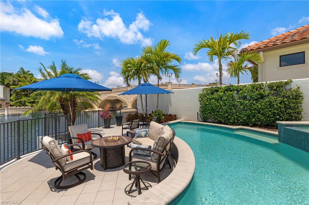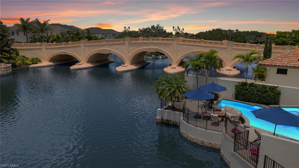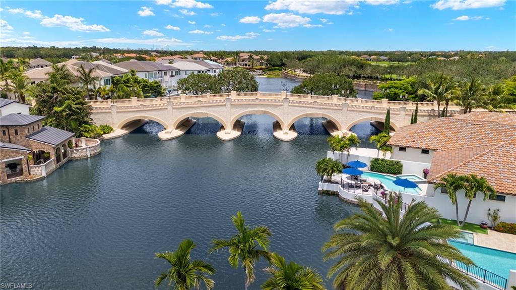 IMMEDIATE GOLF MEMBERSHIP AVAILABLE FOR PURCHASE AT CLOSING! SKIP THE WAITLIST! Sun-drenched long lake views and gorgeous sunsets over the iconic bridge, plus a timeless interior, combine to make this one-owner custom-built residence in TALIS PARK a show stopper! From the moment you enter the foyer, you'll be delighted with the many upgrades, including beautiful soft, white cabinetry. An expansive island, a separate bar with a wine cooler and plenty of cabinets for storage, stunning light fixtures, a vaulted beamed ceiling and an office with built in cabinetry and two desks could easily serve as a fourth bedroom. A spacious primary suite affords two walk-in closets, an oversized shower and stunning vistas. The split bedroom floor plan on the second level provides two spacious ensuite bedrooms and a large loft area for an engaging gathering place for tv watching or to seek solitude while working/reading. The summer kitchen provides a beautiful setting for entertaining or al fresco dining. Electric screens make it pleasant year round. The pool and spa area have an exquisite California vibe plus an exceptional terraced area for enjoying the gorgeous views. Even the garage is well equipped with a Daikin room air conditioner, parking for two vehicles plus a golf cart, built in shelving and an epoxy floor. With an easy stroll across the street to the driving range and Casa Cortese, this location is highly desirable. Talis Park features an award winning golf course designed by Greg Norman and Pete Dye, an award winning clubhouse with numerous dining/bar venues, the Casa Cortese with a golf simulator and billiards, Fiona's Market, workout facilities, Esprit Spa, tennis, pickleball, bocce, two dog parks, miles of walking/running/bike riding and an extremely busy social calendar. Located between Olde Naples and RSW Airport and a short drive to the sandy beaches of Naples, the location is premier. Time to live your very best life in Talis Park!