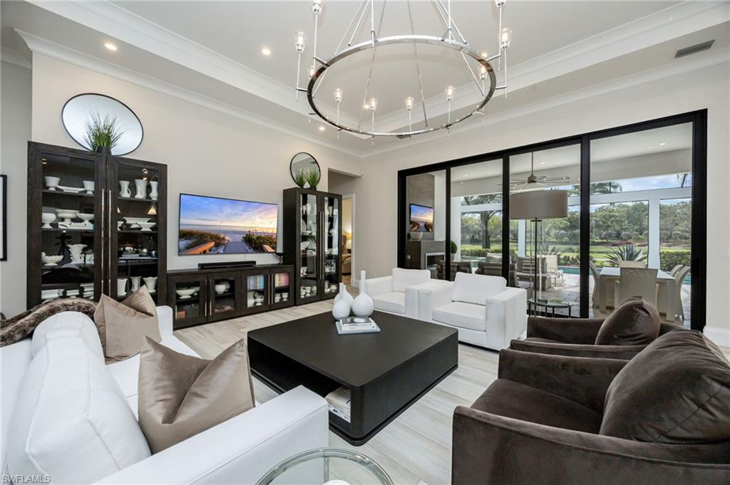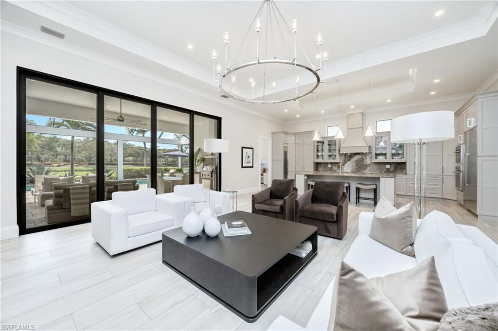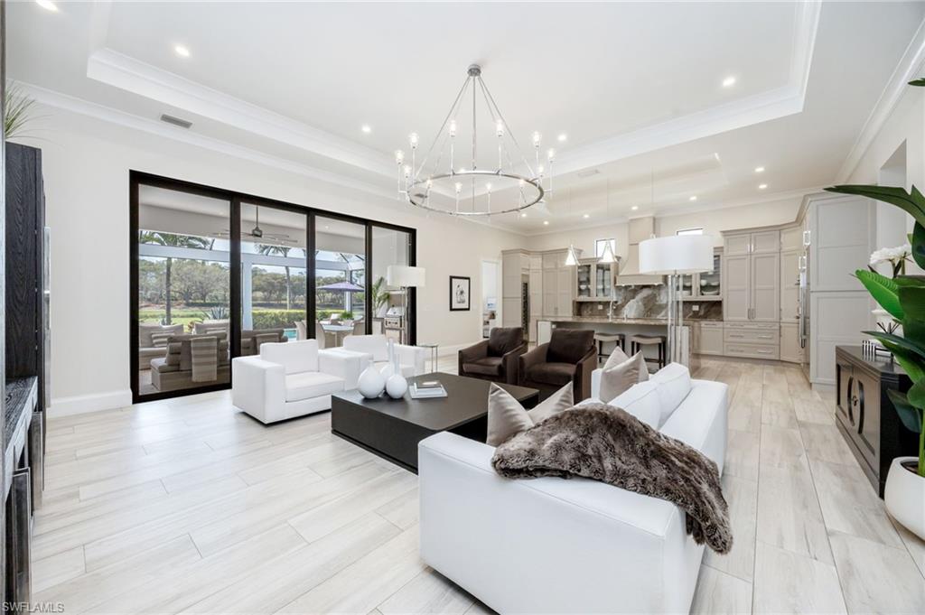 Welcome to a refined expression of Florida luxury living in Talis Park- where modern elegance meets a vibrant golf course lifestyle and offering IMMEDIATE GOLF MEMBERSHIP AVAILABILITY (at closing) allowing you to bypass the waitlist. This stunning one-story custom home is perfectly positioned along the community's championship golf course, providing breathtaking lake and fairway views framed by lovely landscaping. Designed for both comfort and sophistication, the residence features three spacious bedrooms plus a private den/home office, ideal for remote work or quiet retreat. At the heart of the home, the fully remodeled gourmet kitchen showcases high-end appliances (Gaggenau and Thermador), custom cabinetry, built in wine cooler, and an expansive island which is perfect for entertaining or everyday living. The open concept design flows seamlessly into the main living area. No carpet found in this home, only stunning Italian wide plank tile. Step outside to your private oasis where indoor and outdoor living blend effortlessly. The saline pool and spa overlook tranquil water and the manicured golf course, creating a serene backdrop for relaxation. The summer kitchen elevates outdoor entertaining, making it easy to host gatherings year-round in true Southwest Florida style. A whole house generator provides further peace of mind. The spacious laundry room with an abundance of built in cabinetry is a welcome bonus. Set within Talis Park, residents enjoy an amenity rich community known for its award winning clubhouse, fitness center, social lifestyle, tennis and pickleball courts, bocce, two dog parks and numerous dining venues. Perfectly situated between downtown Naples and RSW airport and minutes to the gorgeous Gulf beaches!