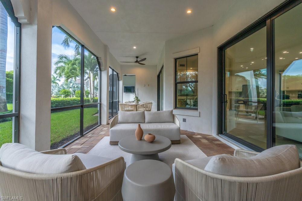 NEW TO MARKET... Available now seasonally December 1, 2025 through April 30, 2026 at $17,000 per month, annual or off-season $10,000 per month May 2026-Sept 2026. Sports Membership Transfer Available! First-Floor `Messina` Model Coach Home with attached two car garage located in the Corsica subdivision of Talis Park. 2,532 sq ft under air includes 3 bedrooms, 3 full ensuite bathrooms and powder room. All brand-new furnishings. Upgraded light fixtures and recessed LED lighting. Freshly painted and new flooring in bedrooms and closets. No carpet. Corner residence, very private end unit. Equipped with KitchenAid appliances, including a brand-new 2024 refrigerator, beverage/wine cooler, natural gas range, a walk-in pantry, and an oversized island that opens to the bright and airy living and dining spaces. The primary suite includes double sinks, soaking tub, and two spectacular walk-in closets. Enjoy barbecuing on a built-in grill at your private outdoor kitchen located in a screened in lanai. Lush, landscaped backyard area includes a fire pit. Walking distance to the Sports Complex (lap pool, grill, Bocce ball and lighted Tennis & Pickleball courts near the south entry gate). Various restaurants, gym, and activities at the main clubhouse. Located in North Naples Talis Park offers an award winning recently renovated golf course and driving range designed by Greg Norman and Pete Dye.