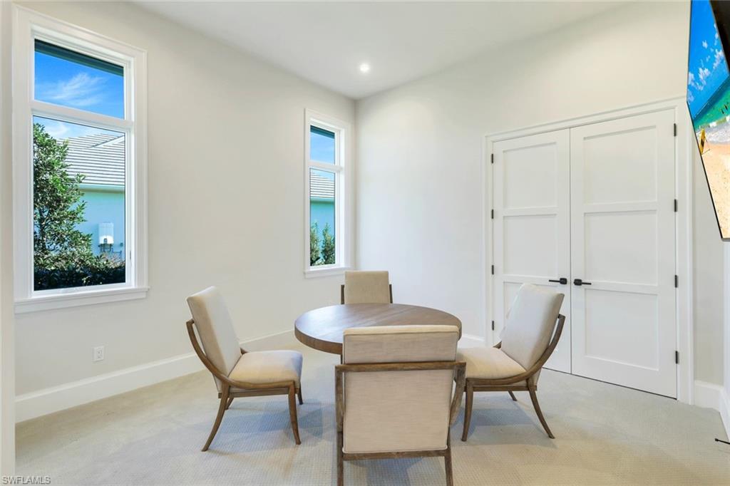 Immerse yourself in a lifestyle of elegance and serenity with this spectacular lakefront home in the heart of Naples. Situated within a prestigious gated community, this residence is surrounded by meticulously maintained landscaping, brick-paved streets, and a charming parklet, creating an inviting atmosphere at every turn. Expansive views of neighborhood lakes with fountains set a tranquil backdrop, while the private backyard retreat offers a sparkling swimming pool, soothing spa, outdoor kitchen, and ample space for entertaining or relaxing in privacy.The interior is designed for both comfort and sophistication. The gourmet kitchen features high-end Viking appliances, custom wood cabinetry, and Pompeii quartz countertops, seamlessly connecting to the family room anchored by a warm gas fireplace. The main suite, located on the first floor, is a sanctuary of luxury with volume ceilings, a private sitting area, dual oversized walk-in closets, and a spa-inspired bathroom complete with a freestanding soaking tub, walk-in shower, and dual vanities. Additional first-floor spaces include a versatile den, an en-suite guest bedroom, a formal dining room, and a thoughtfully designed butleru2019s pantry.Every detail of this home is crafted to elevate daily living while offering easy access to the best of Southwest Florida. Whether itu2019s relaxing by the pool, entertaining in style, or exploring nearby Gulf beaches, Mercato, fine dining in Naples and Bonita Springs, or convenient travel via SWFL International Airport, each day brings new opportunities for enjoyment. Welcome to the pinnacle of lakefront livingu2014a 2024-built residence where sophistication, comfort, and a vibrant Florida lifestyle converge.