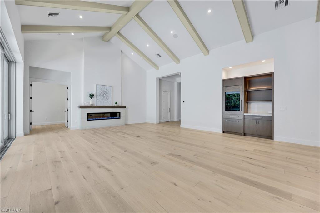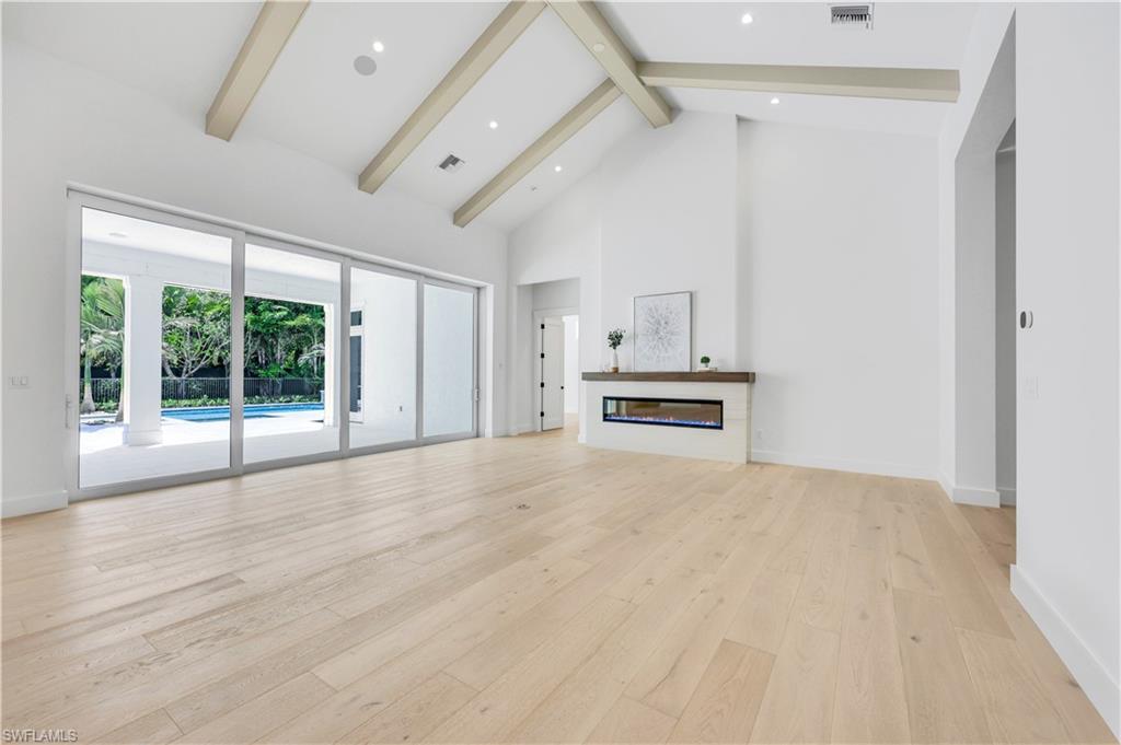 Welcome to your new oasis in the heart of Naples! This single-family home is situated in an exclusive community of The Enclave of Distinction, with just 27 residences, providing a warm sense of community. This gated retreat offers the perfect blend of privacy and convenience, featuring charming brick-paved streets, well-lit sidewalks, and lush landscaping.The spacious one-story layout includes a great room that leads to a main suite, complete with a luxurious bathroom featuring a soaking tub, an oversized shower, and separate vanities. There are also two guest suites, a den, and a third guest suite that has a private entrance from the lanai. This suite provides a quiet and spacious area for guests, equipped with a custom bar, quartz countertop, sink, and beverage center.The home is filled with natural light thanks to its high-volume ceilings, which enhance the stunning great room that features wood-beam ceilings, a custom bar with a wine cooler, a glass cabinet tower, and free-floating wood shelving with lighting, along with a 74` linear fireplace. Culinary enthusiasts will love the superior kitchen equipped with Viking appliances, including a refrigerator, dishwasher, convection speed oven, and gas range with a hood vent. These features are beautifully complemented by white wood cabinetry with glass doors and quartz countertops with waterfall edges. Additionally, a GE front-load washer and dryer provide modern convenience.Enjoy the tranquility of a private garden setting or entertain guests effortlessly in your outdoor spaces, which include an outdoor kitchen with a gas grill, electronic roll-down screens, a refreshing swimming pool, and a spa. Seamlessly convenient, the home is located near Seed to Table, Gulf beaches, Mercato, and Southwest Florida International Airport. This allows you to enjoy a lifestyle of leisure and luxury within the embrace of The Promenade. Donu2019t miss your chance to experience the unparalleled lifestyle this estate offers in beautiful Naples!