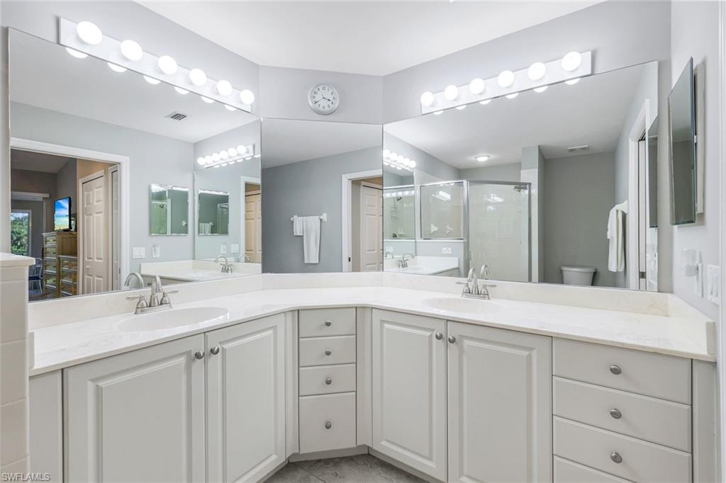 Experience effortless resort-style living in this beautifully updated second-floor Pinnacle coach home at The Strand. A private elevator (2016) welcomes you into a bright, airy 2,150 sq. ft. residence featuring vaulted ceilings, porcelain tile flooring throughout, and a thoughtfully designed 3+den, 2 bath floor plan. The enclosed lanai, enhanced with temperature-insulated, noise-reducing Solara sliders and no-see-um screening, is the perfect spot to sip your morning coffee or unwind with a glass of wine while taking in the expansive tropical golf course view. The kitchen is both stylish and functional with newer stainless-steel appliances including an induction range, a pantry with pull-out shelving, and updated fixtures. The open living and dining spaces make entertaining easy, while the den provides flexible use for a home office or reading retreat. The primary suite features two walk-in closets, linen closet and a bath with dual vanities. The guest bath has been tastefully updated with a walk-in shower and frameless glass doors. A well-equipped laundry room includes cabinetry, washer, and dryeru2014keeping everyday tasks convenient and organized. Every detail has been addressed for comfort and peace of mindu2014complete replacement of sub-flooring for sound and moisture insulation, newer impact glass windows, tall baseboards, professional interior paint, and a new 2024 Rheem A/C with UV light. Additional upgrades include a new electrical panel with generator transfer switch (supporting both 110 & 220V), new smoke and carbon monoxide detectors, and newer Kohler comfort-height toilets. Enjoy a friendly, active country club lifestyle with access to The Strandu2019s three impeccably maintained 9-hole golf courses, tennis, pickleball, fitness center, pool with lap lanes, bocce, and croquet. The recently remodeled Strand Clubhouse showcases stunning classic coastal du00e9cor, offering residents elegant spaces for dining and socializing. Dine casually at the Island Bar or the all-new Tavern 59, or savor formal dining at the clubhouse. Centrally located in North Naples, The Strand offers easy access to shopping, dining, and the areau2019s beautiful beaches. This is the perfect blend of comfort, quality, and communityu2014ready for you to move in and enjoy the Naples lifestyle.