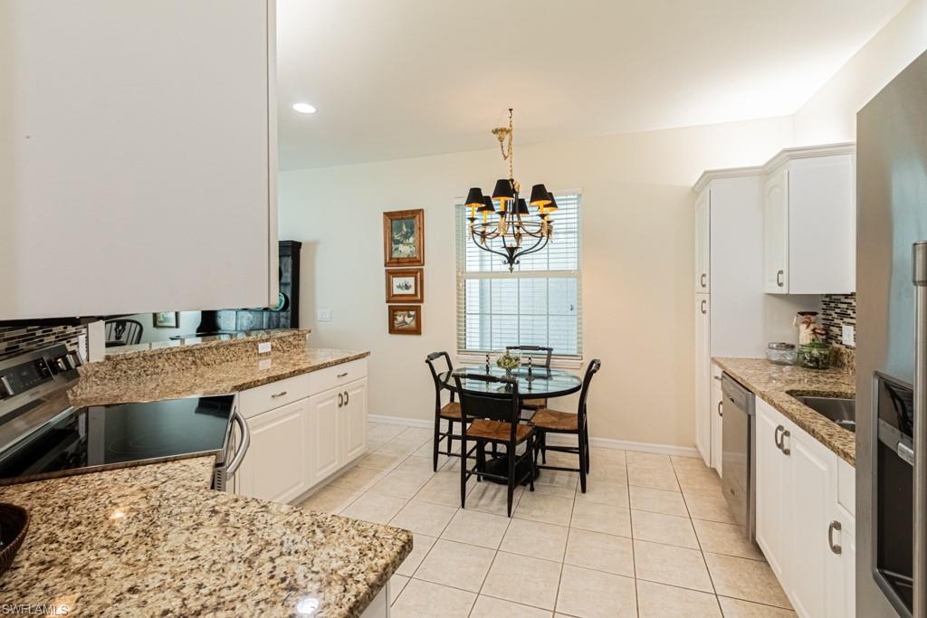 UPDATED FIRST FLOOR CONDO WITH A VIEW OF THE GOLF COURSE, AND LAKE. THE REAR IS A SOUTH EXPOSURE. THE REAR SOUTH EXPOSURE IS THE 8th HOLE OF THE PRESERVE GOLF COUESE, there three 9 hole courses. There is availability if you would like to join golf. There is an additional cost to belong to the GOLF COURSE. The inside of the condo is all freshly painted in one neutrial cream color. The bedrooms, den, dining room, and great room have new Pergo wood flooringi installed in2024. The kitchen, two baths, laundry room, and lanai are white tile. New Heating and Air Conditioning unit in 2024, new hot water heater in 2022, and all new fans. All new blinds throughout..... Updated kitchen with white cabinets, stainless appliances, and granite counters. All new hurricane windows and doors, and sliding doors to lanai. New tiled roof, new landscaping, newly exterior paint. Driveway and walks all have brick pavers. STORM SHUTTERS ON LANAI. The one car garage has plenty of storage.New garage door opener system in 2025. Wedge Wood has its own pool and party room. THE STRAND COMMUNITY HAS IT ALL.....An Olympic size salt water pool, resort style pool, a full service spa updated in January 2025. The EXERCISE BUILDING HAS BEEN TOTALLY REDONE IN 2025. There are tennis courts, basketball court, bocce courts, pickleball courts, restaurants, and the list goes on. Just a short drive to the beach, grocery store, shopping, downtown Naples, Mercato Shopping Center, and the BEST THAT NAPLES HAS TO OFFER.. THE STRAND COUNTRY CLUB HAS JUST BEEN COMPLETELY REDONE INSIDE AND OUT........ MOVE IN READY........